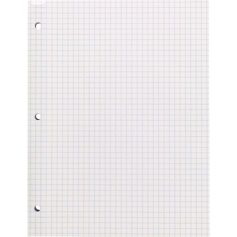 • 3-hole punched. 100 Sheets. Graph Ruled. 8 1/2" x 11". White paper. Reinforced holes. Sheets fit standard-size ring binders – no hole punching required.