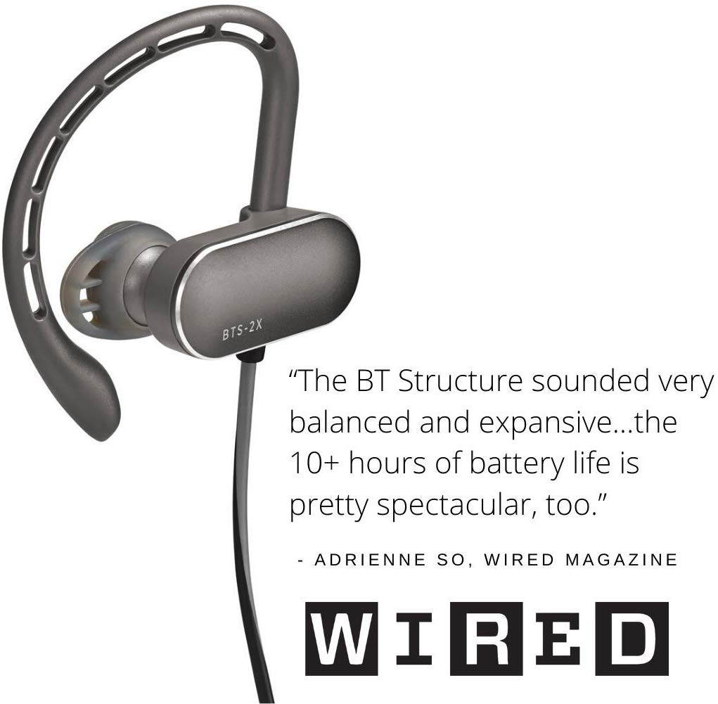 The BT Structure’s behind-the-ear design is coupled with reinforced silicone eartips to ensure they stay in your ear during your most intense workouts. Three sizes of eartips are included (S/M/L/XL) to guarantee a proper seal, which reduces the amount of ambient noise that leaks in, and optimizes audio quality.