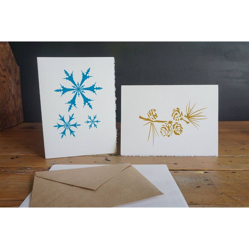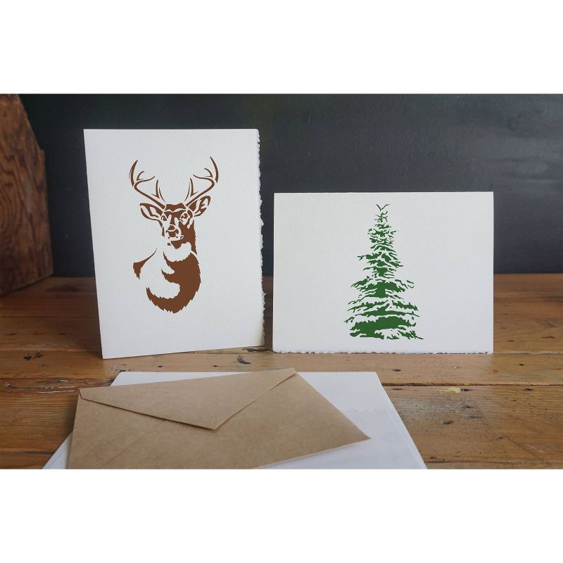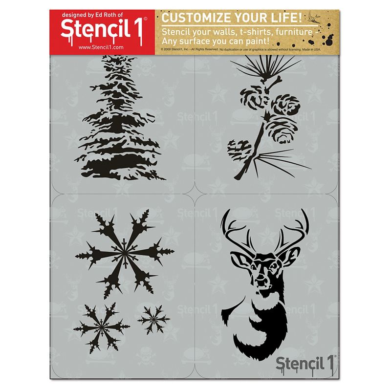 This Stencil1 4 Pack Holiday Set stencil helps you deck the halls with multiple stencils, cut on one sheet, including a snowy pine tree, pine branch, antlered deer and snowflakes all in mini sizes. Perfect for card making and holiday crafts! Layer with another Stencil1 stencil for a more complex design. Made of mylar, this stencil is washable, reusable and compatible with paints, inks, markers, pencils and more. Can be applied to a variety of materials, including wood, paper, fabric, metal, ceramic, concrete and glass. Show us how you create with Stencil1 by tagging #stencil1 for a chance to be featured on Stencil1.com.
