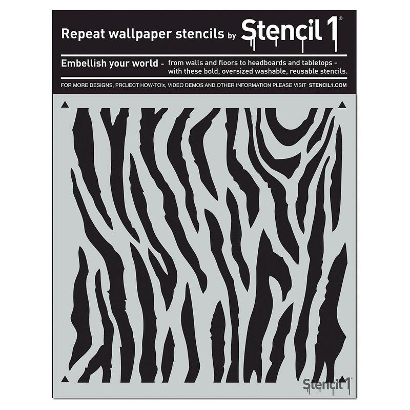 •The Stencil1® Zebra Print Repeating - Wall Stencil 11" x 11" contains one 11" x 11" mylar stencil