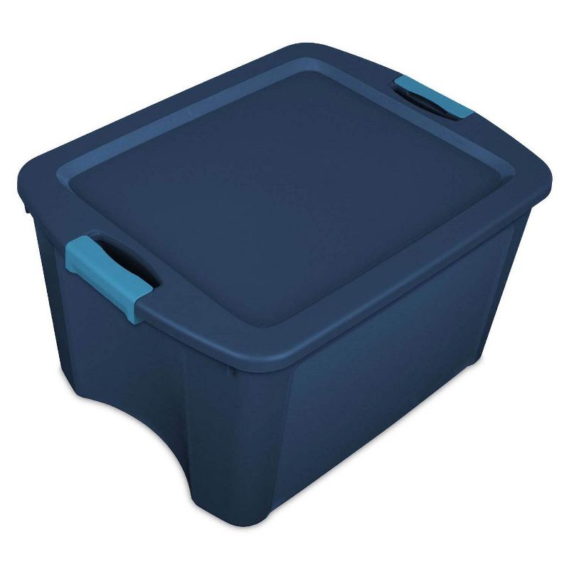 The 18 Gallon Latch and Carry Clear and Tote gives you the versatility to create an ideal storage system with complementary clear or opaque containers. Unique and comfortable carry-though handles provide full grip access and heavy-duty latches keep the lid securely attached to the base. Peel and stick write-on labels allow for easy identification of contents.
