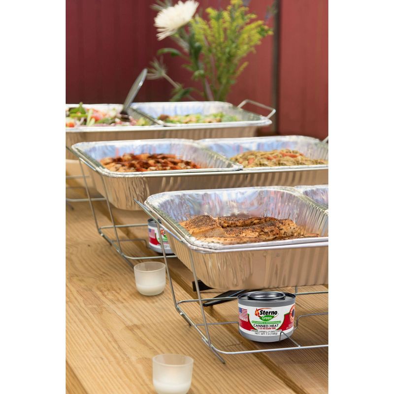 From family camping trips to outdoor eating, keep your food warm with this Sterno Green Canned Heat. This can of ethanol gel can be placed underneath fire-safe pots, grills and dishes to maintain food warmth, and burns for 2.25 hours at a time. This Sterno ethanol gel offers a clean, odorless burn, making it a great option for all your contained flame needs.