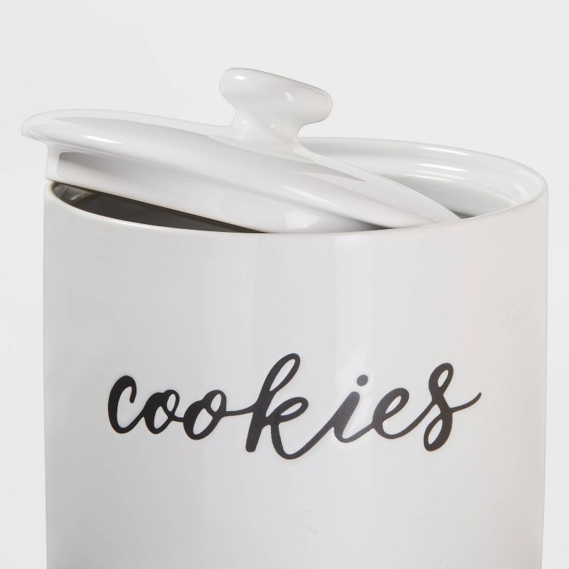 Store your favorite sweets and treats in charming style with the Stoneware Cookie Jar from Threshold™. With a glazed finish and cursive script spelling "Cookies" on the front, this stoneware jar adds a classy and elegant touch to your space. Plus, this cookie jar comes with a ceramic lid that locks in freshness to keep your latest batch of cookies perfectly delicious. A wonderful addition to your coffee table or countertops, this cookie jar will add another touch of sweetness to your stash of treats.