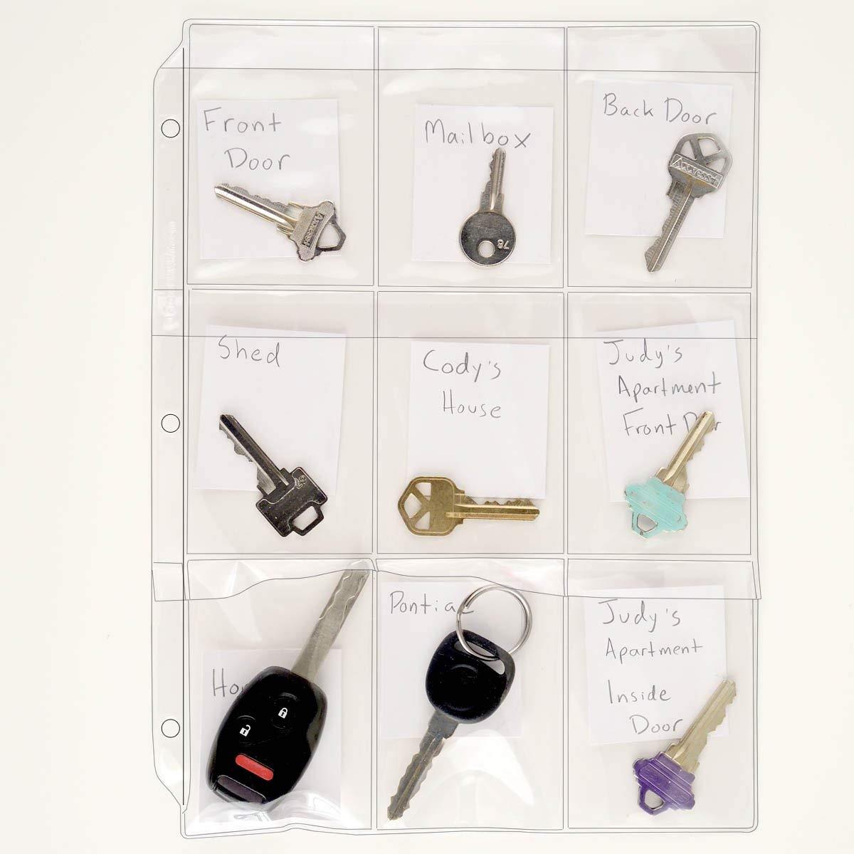 Realtors and Property Owners, how many times have you lost a set of important keys? Too many times, we're guessing! Instead of storing your keys on a keyring or drawer, store and protect them with StoreSMART's 9-Pocket Clear Vinyl Binder Pages. Each page is compatible with three-ring binders, and contains nine 2? " x 3? " pockets with weatherproof flaps. Organize your keys with ease, and stop worrying about the potential loss!