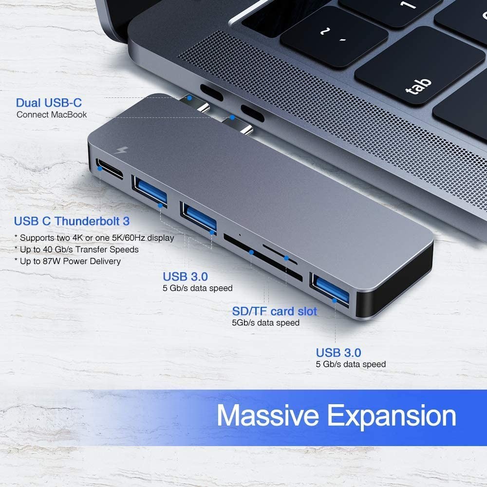 As a totally new product, it is normal that the USB A port is a little tight when you use it in the beginning. It will not damage the device or affect its using. 2. Because of the standard size of ABS shell, two such adapters cannot be plugged in one side of the MacBook pro 2016 / 2017 simultaneously. 3. To avoid radio frequency interference between 2.4GH z wireless USB device and USB 3.1 Gen 1 device, you'd better connect the type c adapter and other devices with your laptop in the sockets on its two sides respectively.