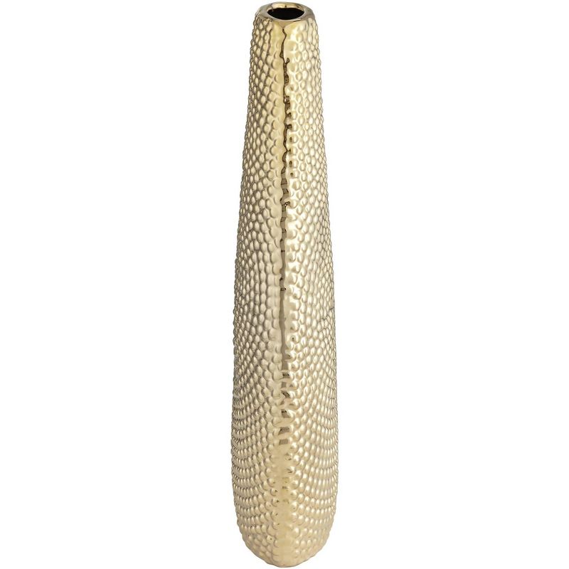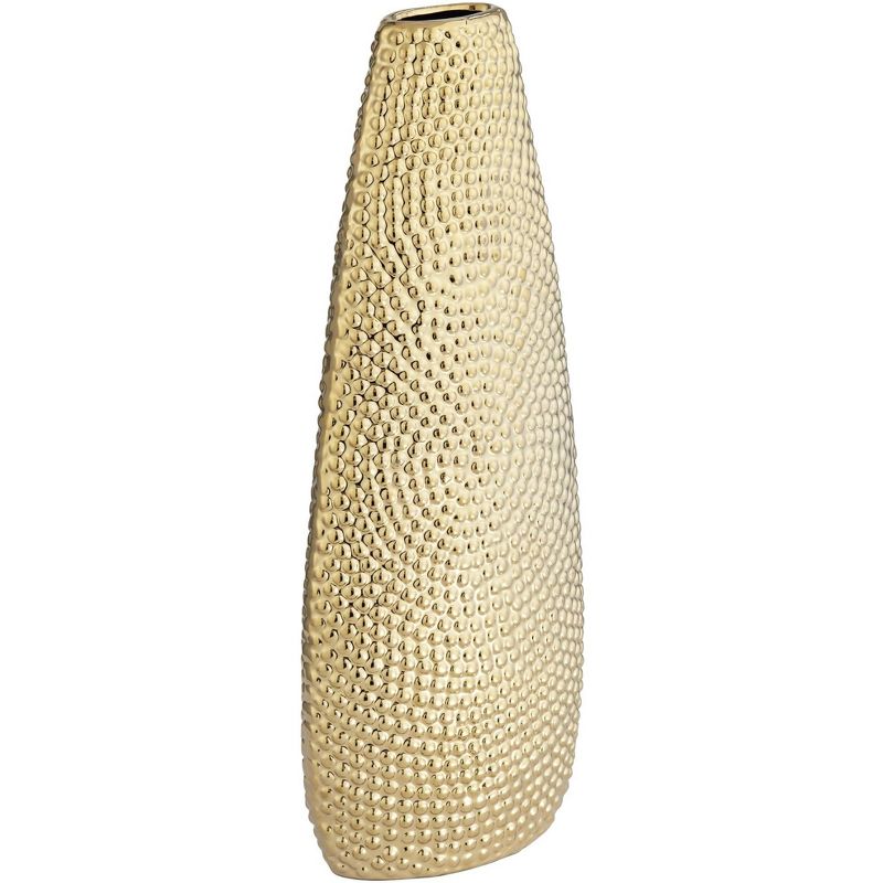 Add some warm, rich glam to any living area as you display foliage or flora. This gold finish ceramic vase delivers a decorative theme and a perfect host for a bouquet, or stands alone as a prominent accent. This textured, shapely vase by Studio 55D creates an artisanal attitude in a modern bedroom or living space.