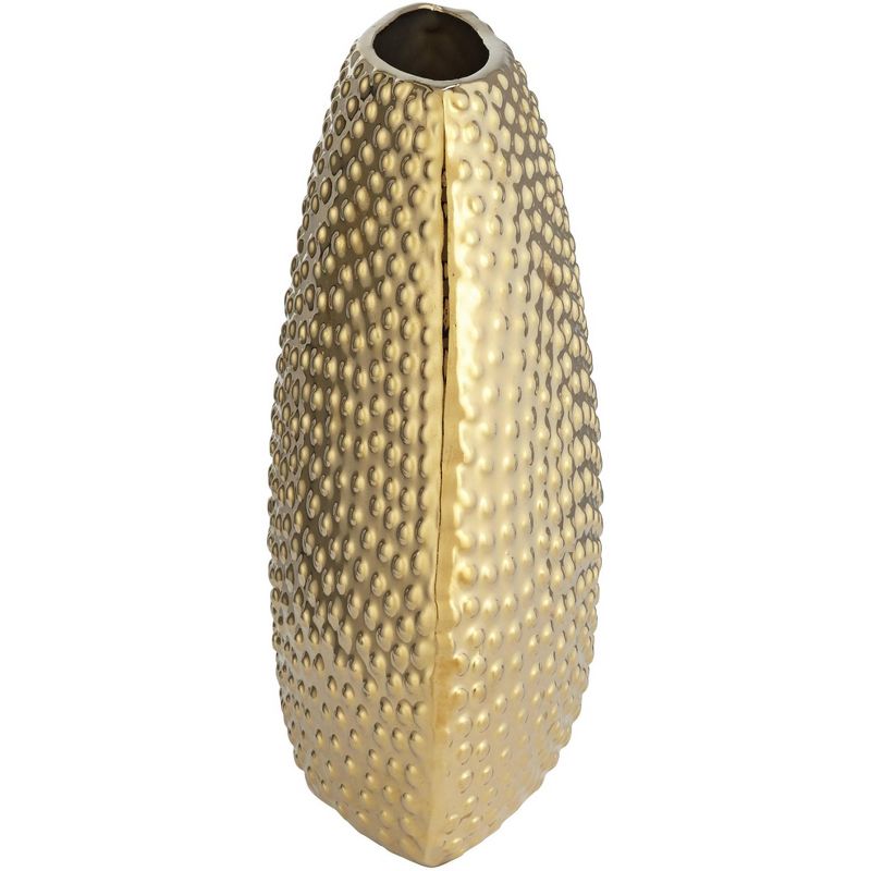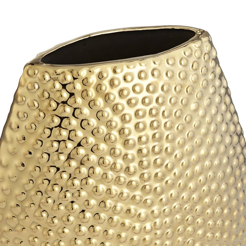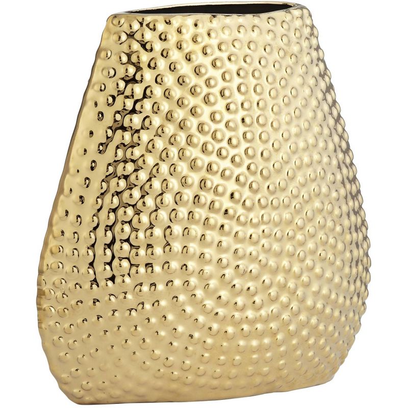 Dress up any space as you display foliage or flora. This gold finish ceramic vase delivers a decorative theme and a perfect host for a bouquet, or stands alone as a prominent accent. This riveted, textured vase by Studio 55D creates an artisanal attitude in a modern bedroom or living space.