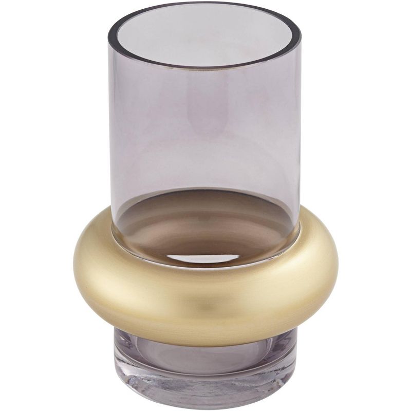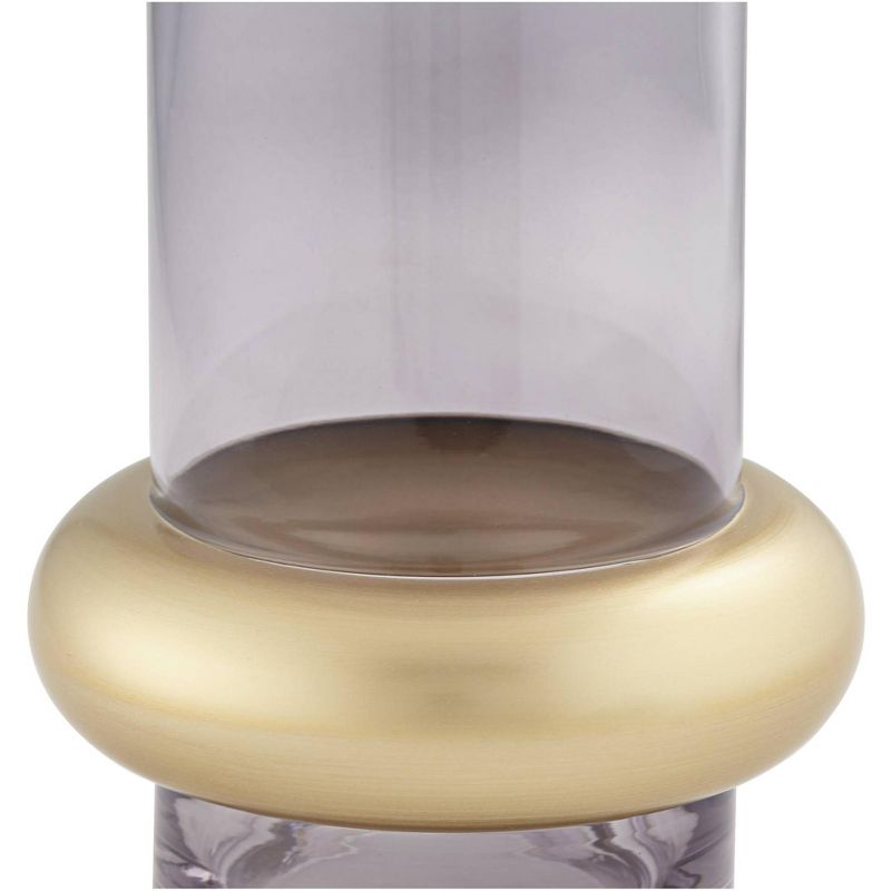 Envision a lovely floral arrangement within this clear and brown glass vase by Studio 55D. The chic cylinder design is enhanced with a gold ring around the middle. This piece immediately brings contemporary appeal to your space.