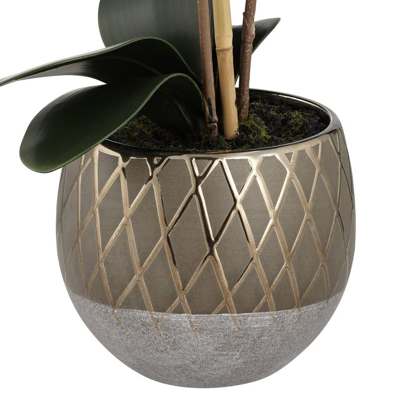 This faux flower arrangement will freshen your decor easily. You never have to worry about watering these florals and they look good year-round. The red color of the orchids is both vivid and stunning.