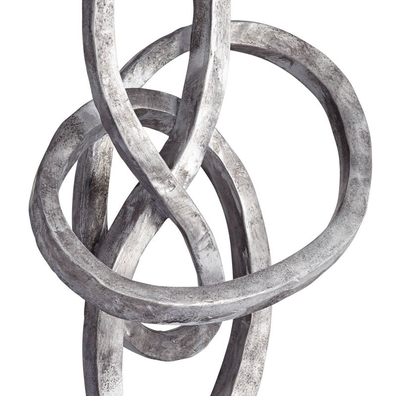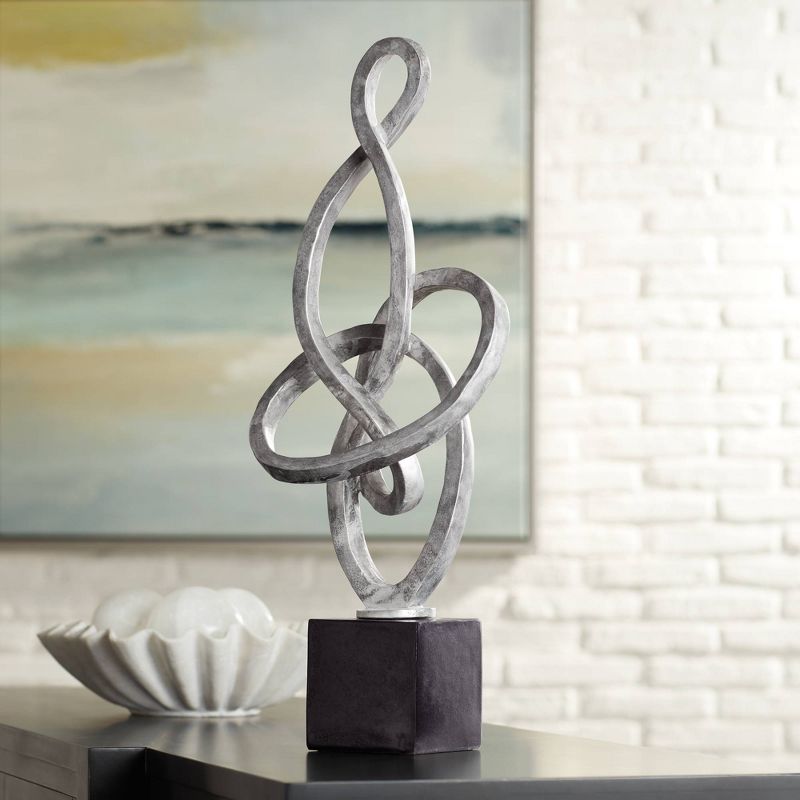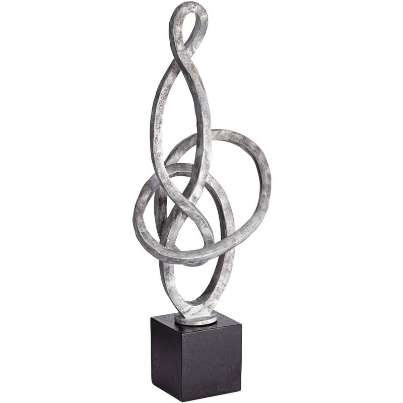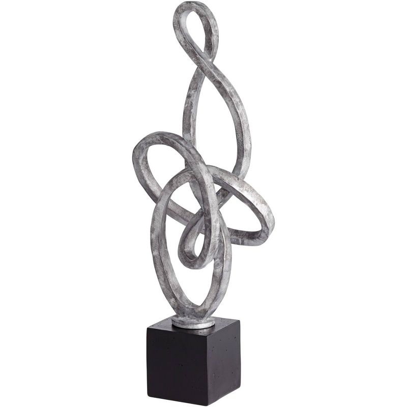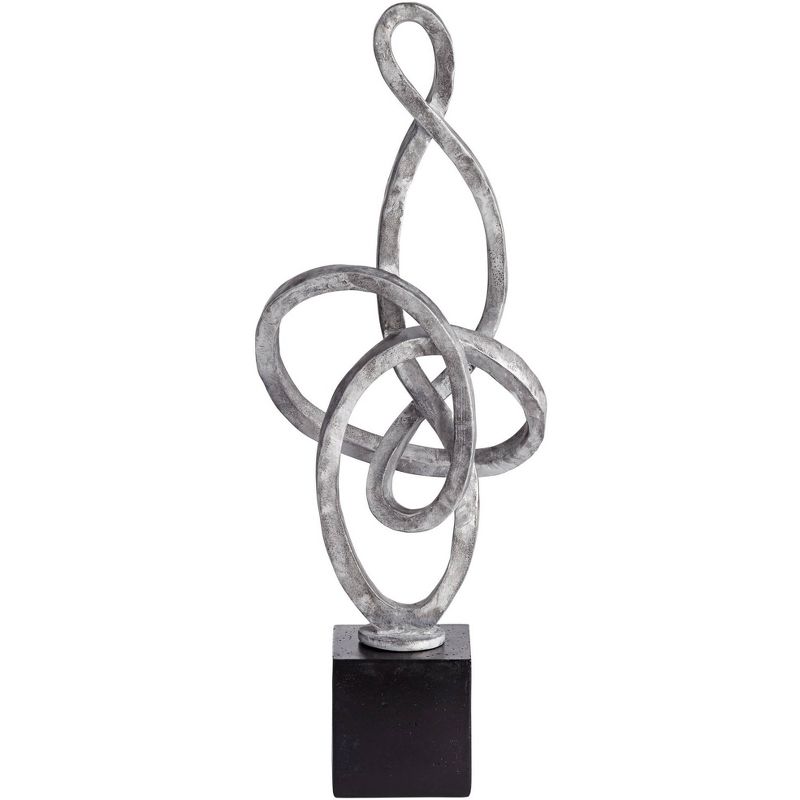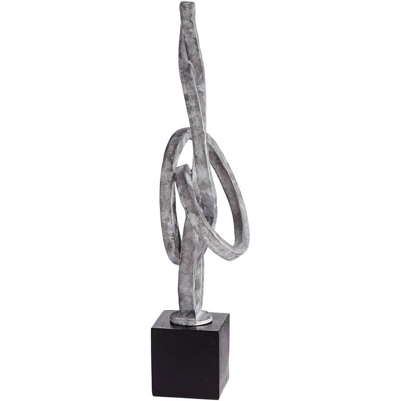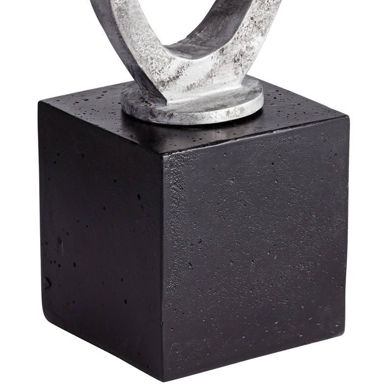 A modern art form becomes an enticing central focus in a modern space when this looped sculpture is in the picture. Follow the dizzying pace of a tempting abstract open circle pattern in a sculpture with a cool matte gray top and black block base. Hand-painted finishes lend an artful touch in a stylish piece that brings personality to a contemporary living room or entryway.