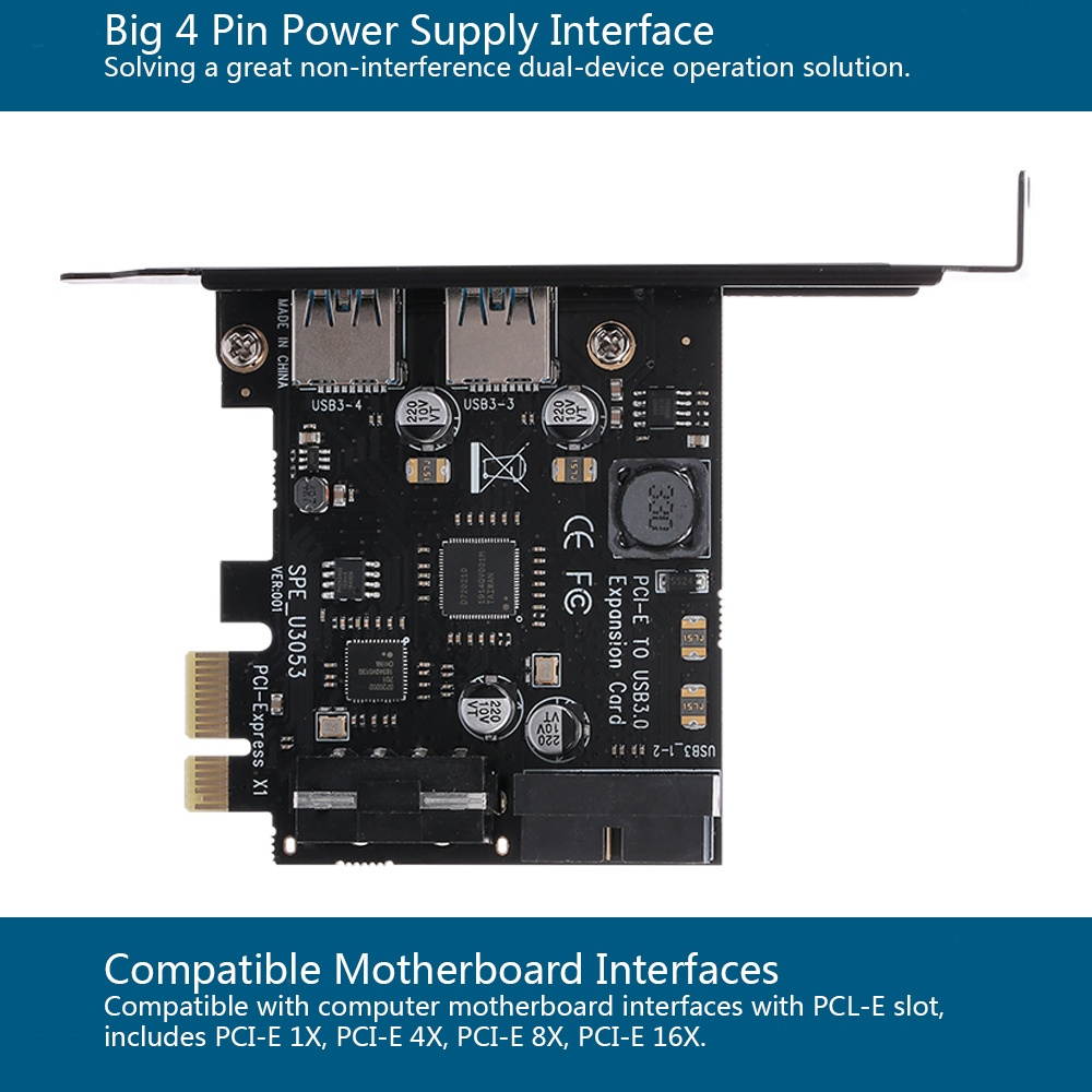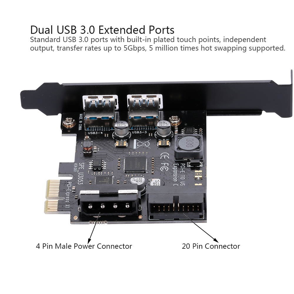 Features: Strictly conform to PCI-E XPRES specification version 2.0 with smart NEC chip, high performance. High speed USB 3.0 supports transfer rates up to 5 Gbps, compatible with original USB system, peripherals and cables, backward compatible with USB 2.0 / 1.1. Superior quality solid capacitance, exquisite materials with fine workmanship, security and stability in data transmission. Easy installation, fully plug and play, support hot swapping, convenient and efficient. USB interface can offer +5V / 2A current for external devices' power supply, big 4Pin power interface can also supply power for devices, ensuring sufficient power supply. Works greatly for Windows 7 / 2000, for XISTA, for Windows XP. Compatible with computer motherboard interfaces with PCL-E slot, includes PCI-E 1X, PCI-E 4X, PCI-E 8X, PCI-E 16X.