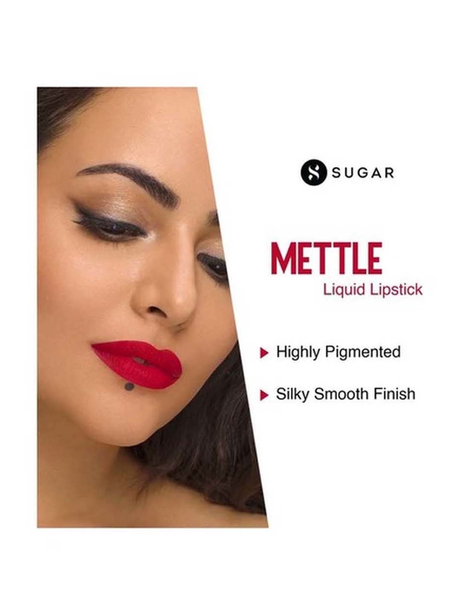 Make heads turn with this irresistible SUGAR mettle liquid lipstick It has a long-lasting and nourishing formula that keeps lips covered with intense bold colour from am to pm. You will love the creamy texture of this lipstick that is not only ultra-lightweight but also silky smooth. It is packed with avocado oil, antioxidants and vitamins A, C and E and this non-sticky, non-drying lipstick promises to take good care of your pout while delivering a rich intensely-pigmented colour and finish.