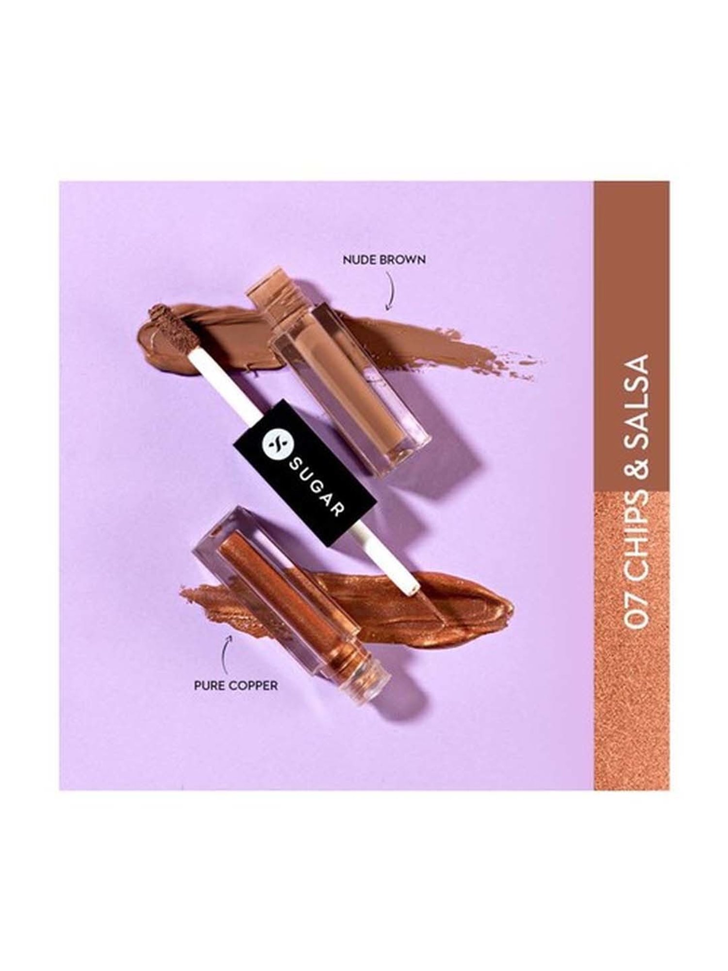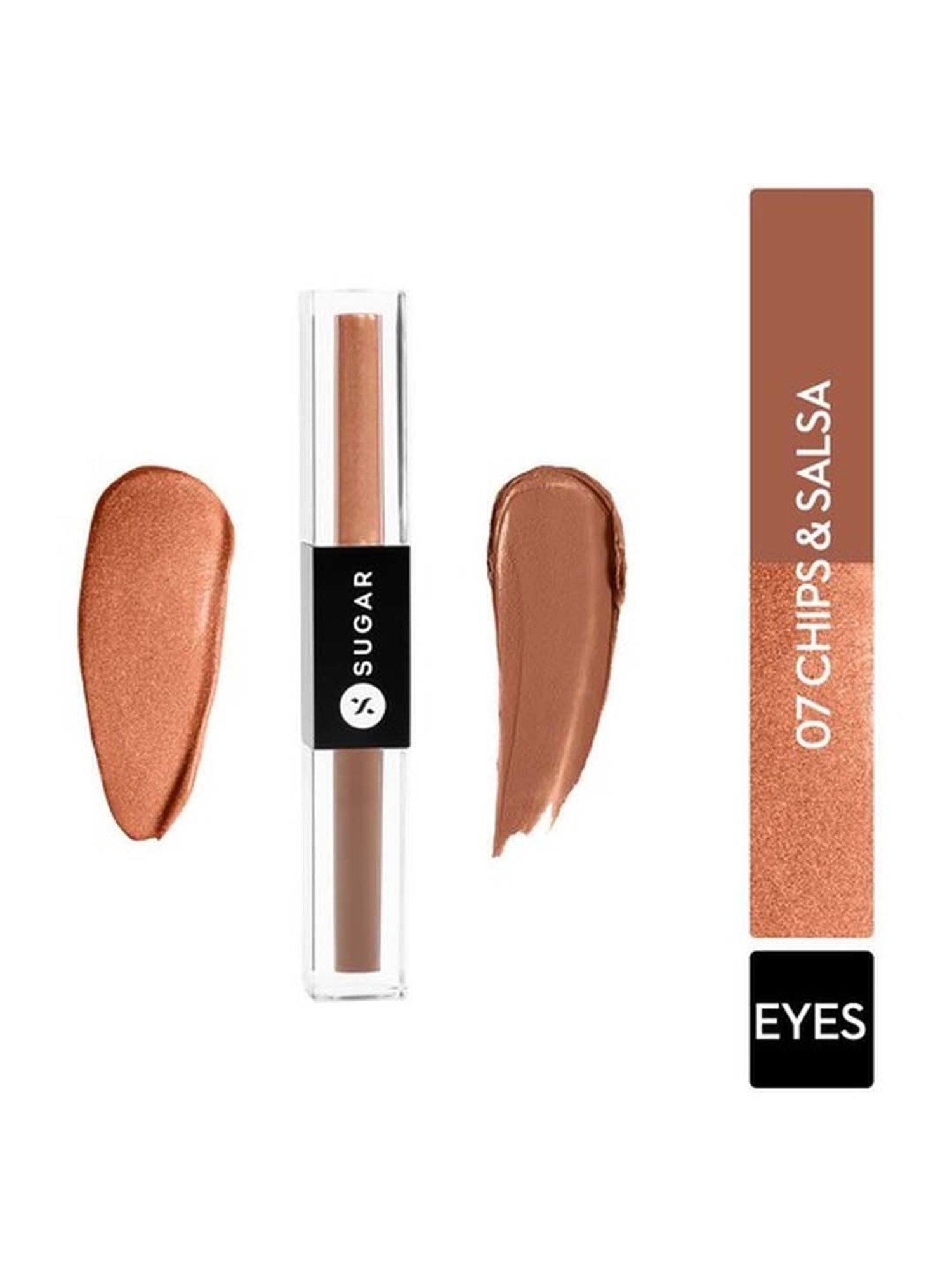 Introducing a dual liquid eyeshadow from SUGAR Cosmetics that combines an elegant velvety matte shade and a gorgeous sparkly metallic shade. Insanely pigmented, long-wear and rich in colour, this dual eyeshadow is designed to last for up to 20 plus hours. The crease-free matte shadow with oil-absorbing properties gives a powder finish. The metallic shadow comes with a brush-like applicator that allows for precise application to control the shimmer intensity and can be used to try versatile eyeliner looks. The metallic formula comes with quick-dry properties and stays budge-proof all day long.