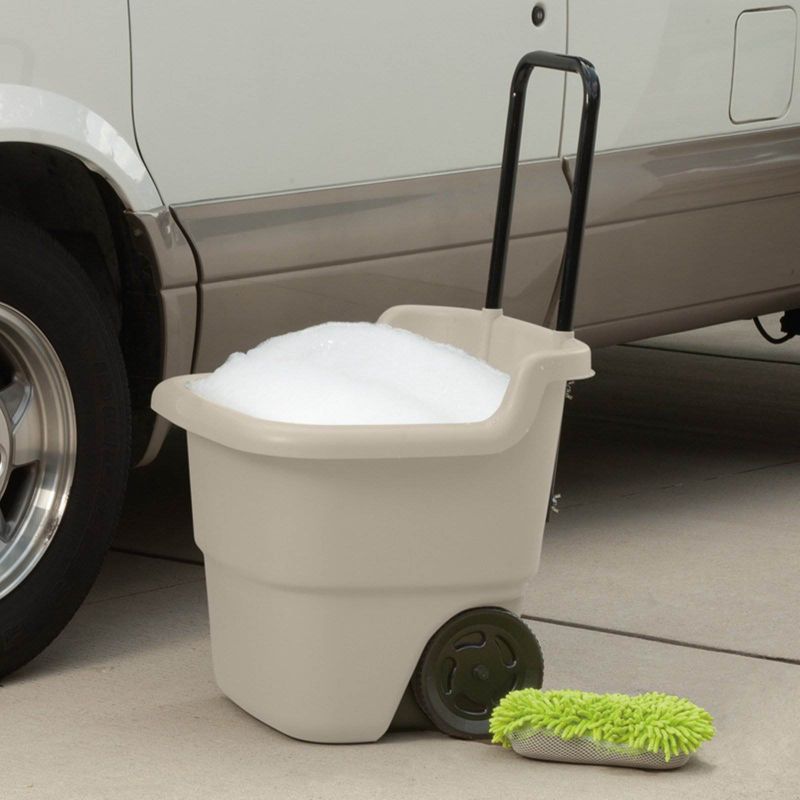 This cart is great because it can store and transport things like mulch, dirt, and a variety of other outdoor items. It's lightweight and easy to use, yet has a durable plastic construction that is sure to hold up over time. Overall, this cart has a 15-gallon capacity and comes with 2 7-inch wheels, making it easy to transport.