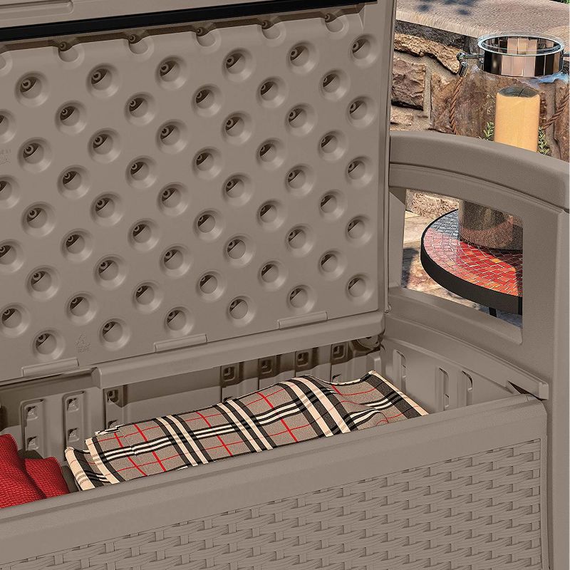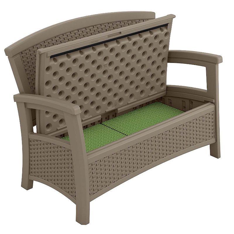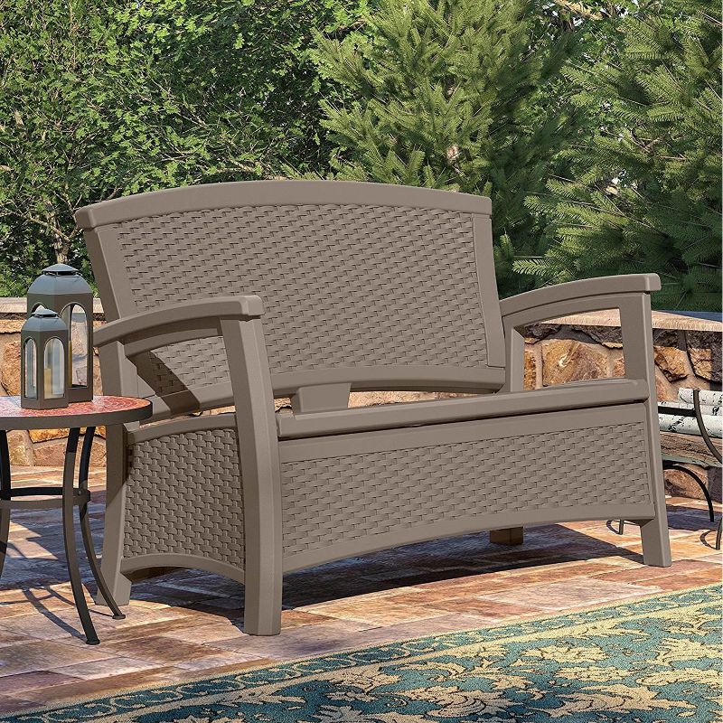 Look classy while you sit and entertain outdoors with this Suncast Elements Wicker Design Loveseat with Storage.