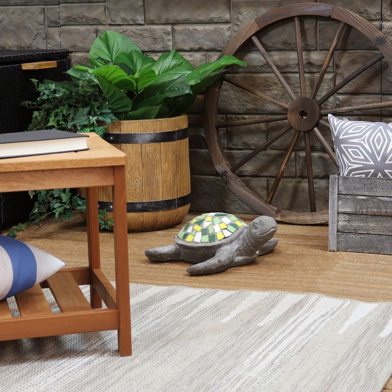 Add seaside charm to the patio, front porch or garden with Simon the Swift sea turtle statue. Made from durable and easy to maintain polystone, this unique sea turtle has a stylish design with a colorful green, white and yellow mosaic shell. This garden statue is the perfect addition for indoors or outdoors. - IMAGE SLOT 4 REPRESENTS PRODUCT IN NIGHTTIME ENVIRONMENT