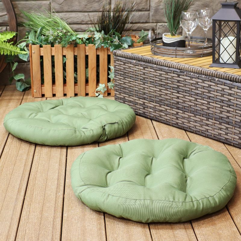 Add a touch of comfort to the lawn, patio, or deck with these stylish cushions. Made from durable olefin with a cozy poly fill, each pillow can be used as a chair pad for a patio dining chair or lawn chair or as an outdoor floor cushion. They can also be used as outdoor pillow seats for floor seating. They are available in several vibrant shades to give your outdoor space a pop of color. They're perfect for adding some style to your patio chairs or for some extra comfort while meditating or practicing yoga outdoors. - IMAGE SLOT 4 REPRESENTS PRODUCT IN NIGHTTIME ENVIRONMENT