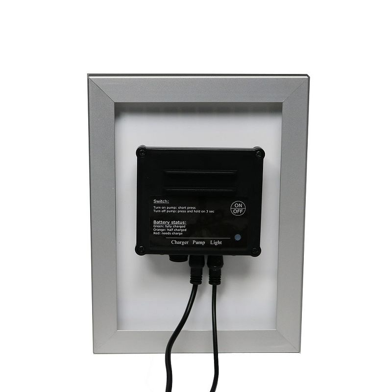 Enhance the natural elements in the garden, patio, or yard with this solar power fountain. Water flows from the top level down to the bottom where it recirculates with help from a submersible solar pump. Simply connect the pump to the tube in the fountain, connect the LED light cord and solar pump cord to the solar panel and place the panel in the sun. The solar with battery backup option allows one to harness solar energy even when there is no sunlight! The rechargeable battery pack charges throughout the day (with or without the fountain running) so the gentle water sounds may be enjoyed in the evening as well. To run on battery mode simply press the Battery On/Off button. - IMAGE SLOT 4 REPRESENTS PRODUCT IN NIGHTTIME ENVIRONMENT