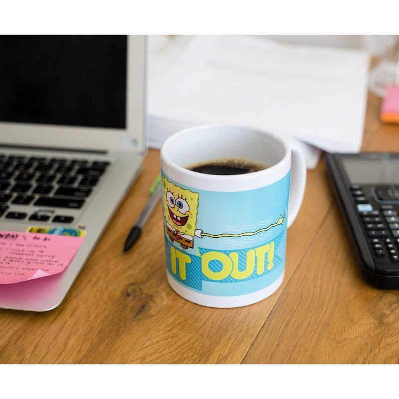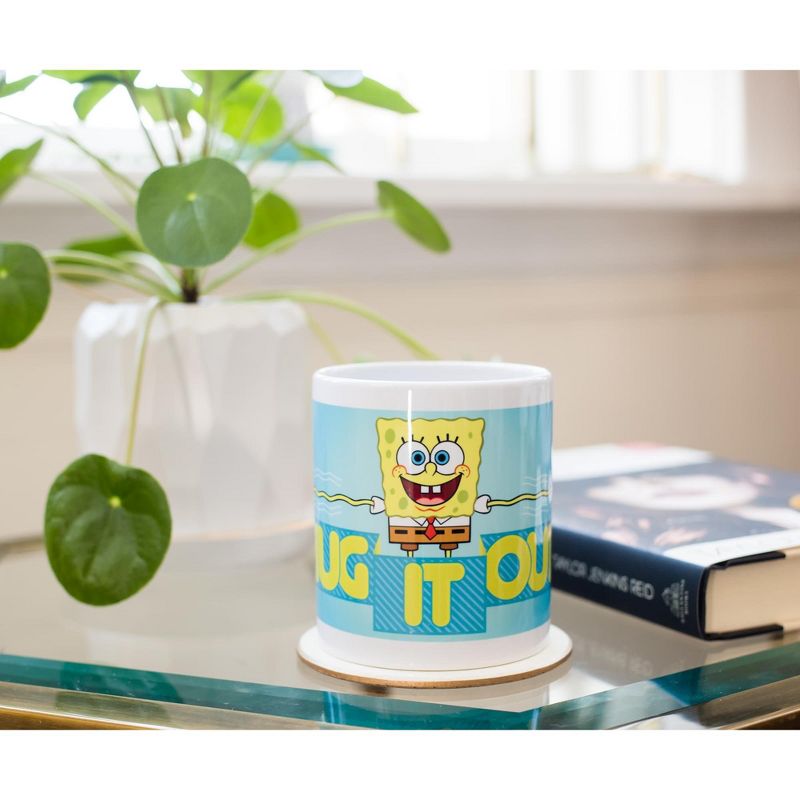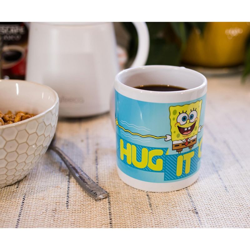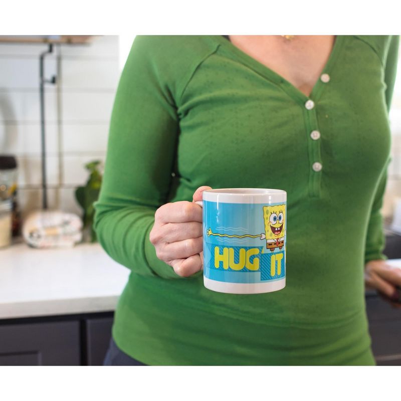 • BOTTOMS UP: Celebrate Nickelodeon with this officially licensed mug featuring SpongeBob SquarePants! Mug reads "Hug It Out".