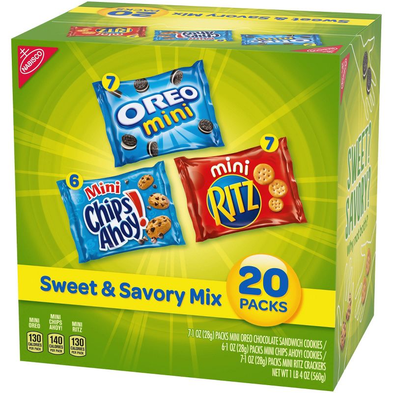 •This assortment of sweet and savory snack packs has an iconic treat for everyone. Choose from miniature OREO sandwich cookies, CHIPS AHOY! cookies, or RITZ crackers.