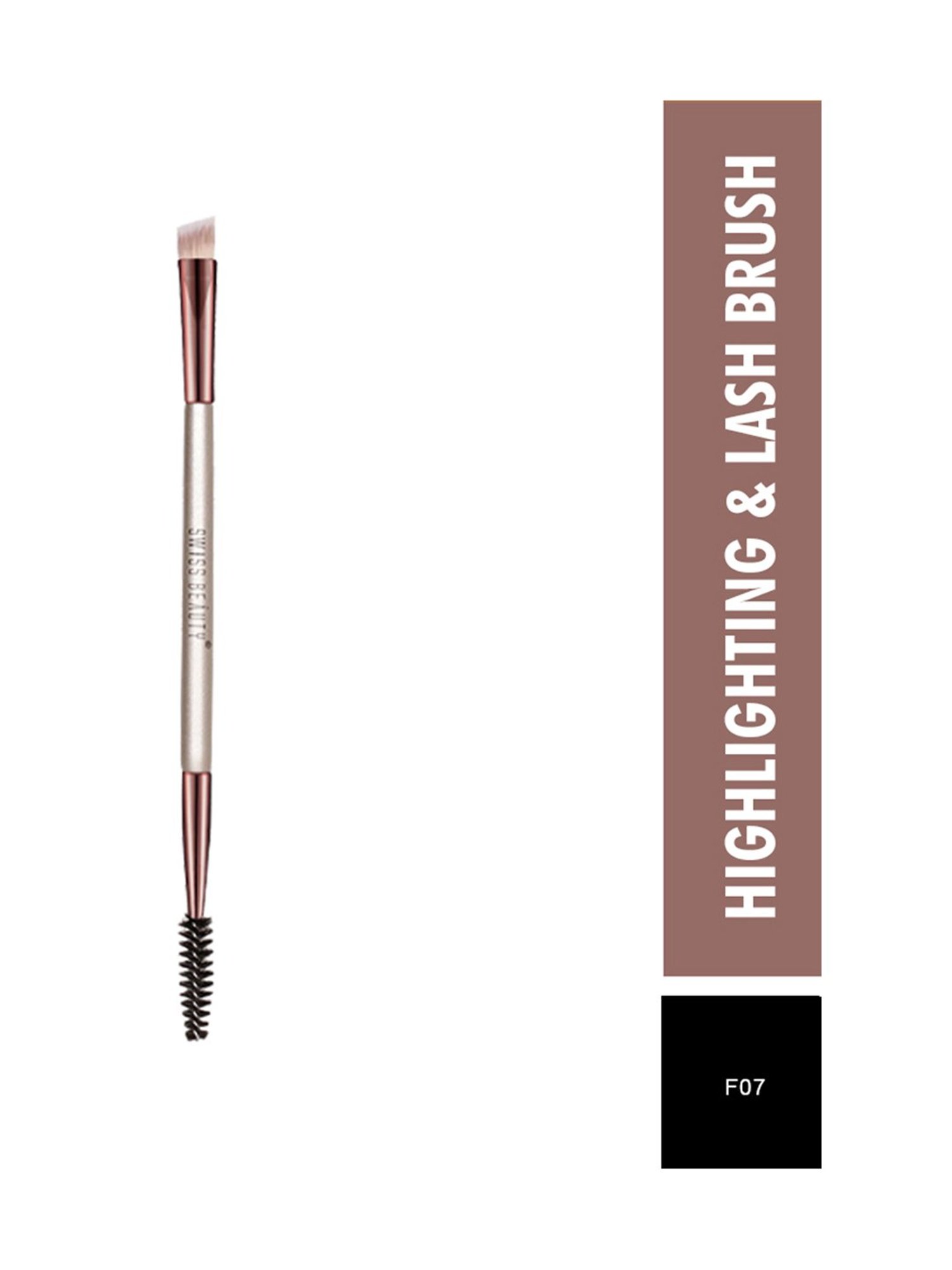 F07: Highlighting & Lash Brush: Spotlight your features! This precise highlighting brush has short and long bristles that work together to buff and blend highlighter, creating a lit-from-within glow. Lash Brush is a brush for separating the lashes as well as combing and grooming unruly eyebrows a professional tool for creating alluring eyes.