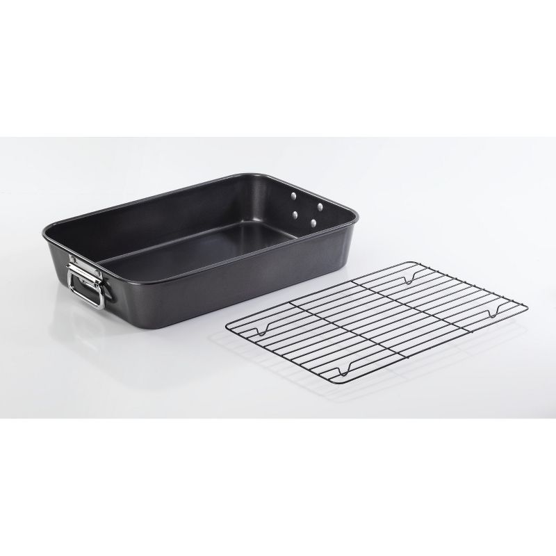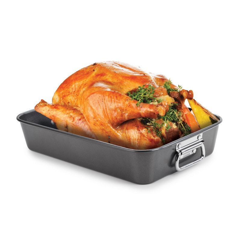 The roast with the most. Juicy, mouth-watering turkeys and tender roasts cook quickly and easily, aided by the superior heat conductivity of this spacious roaster. Transferring meat from roaster to carving board has never been easier with the removable rack, while a nonstick interior provides a surface that's a breeze to clean. Lifetime warranty.