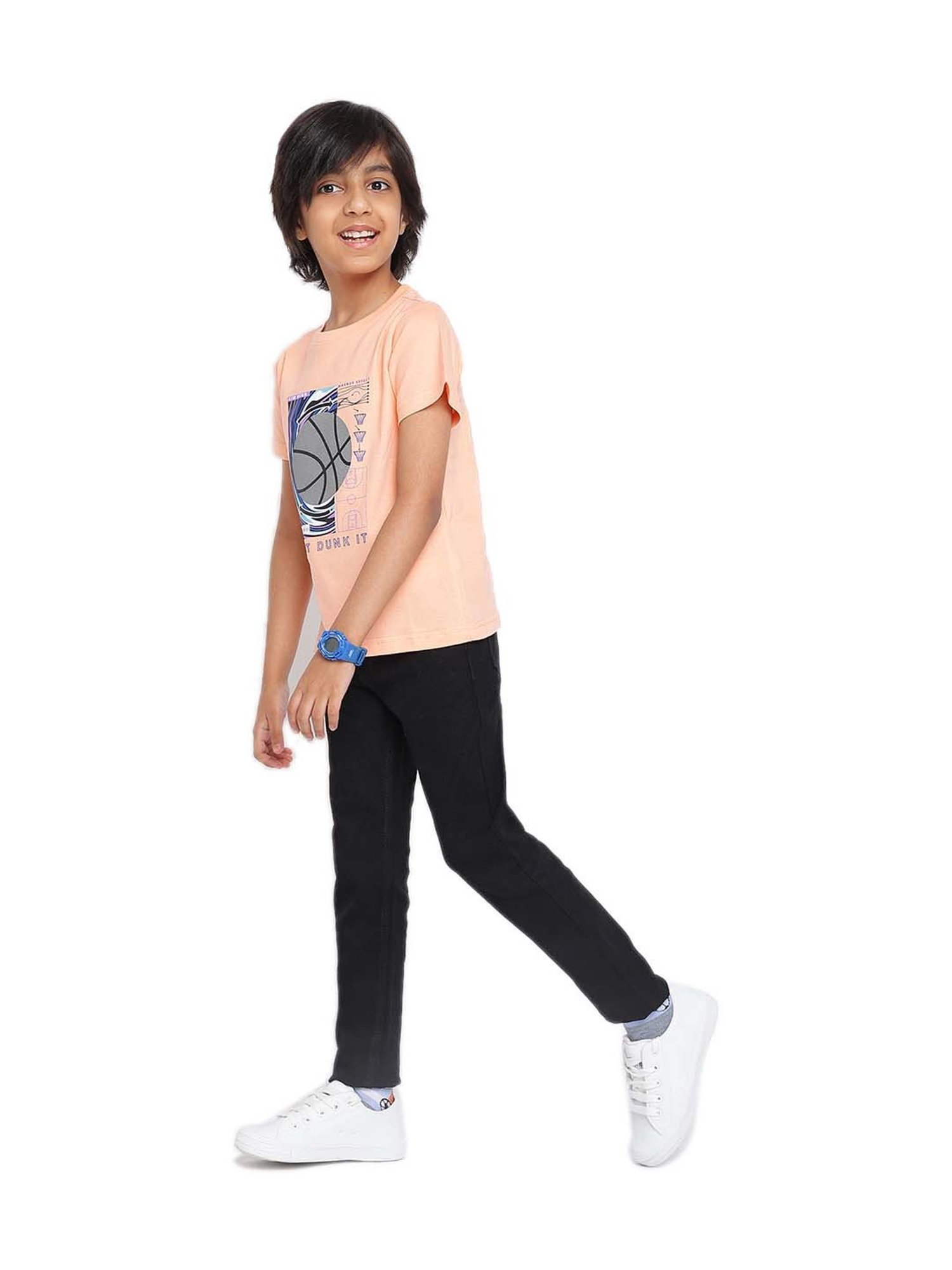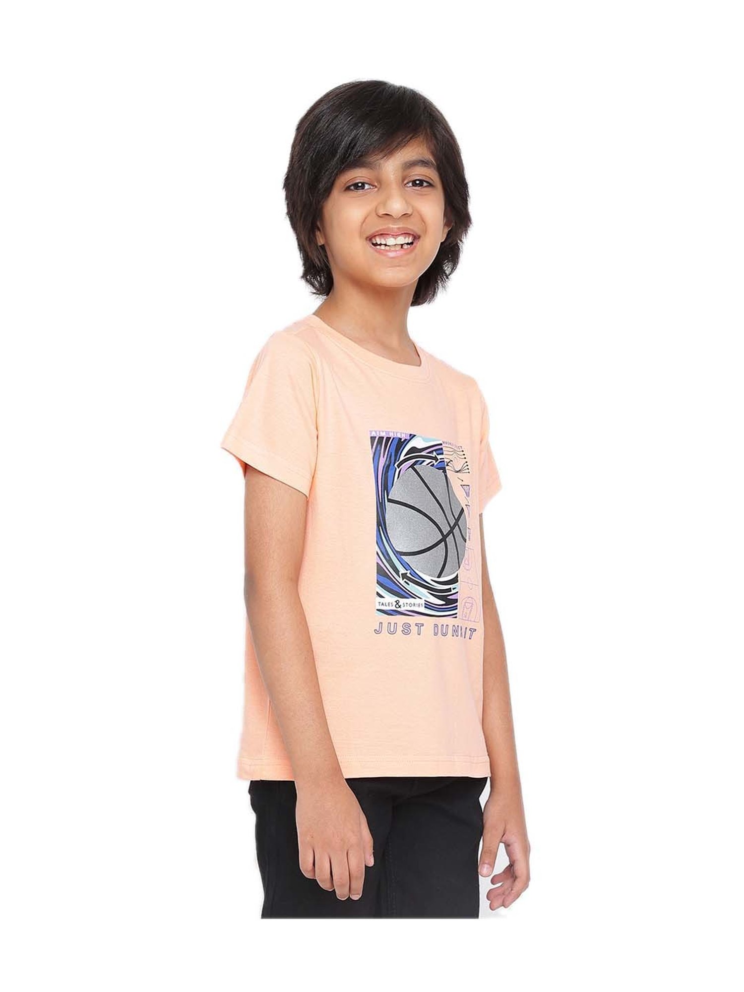 Lend a cute look to your little kid with this pink and grey t-shirt from Tales and Stories Kids. Tailored to sartorial perfection from 100 percent cotton fabric, it assures a soft and soothing touch against the skin. The round neck adds to its appeal. Flaunting half sleeves, it will surely keep your kid updated with the latest trend. The printed pattern makes it a captivating choice. Your little one can team it with a pair of sunglasses for a stylish look.