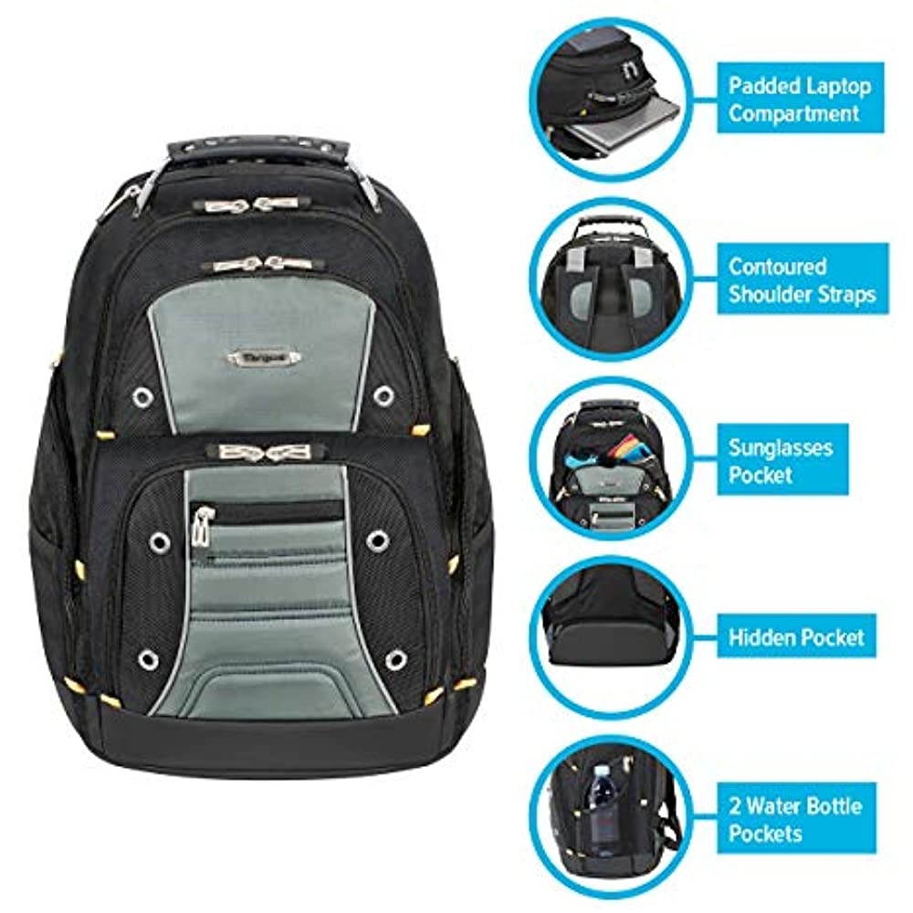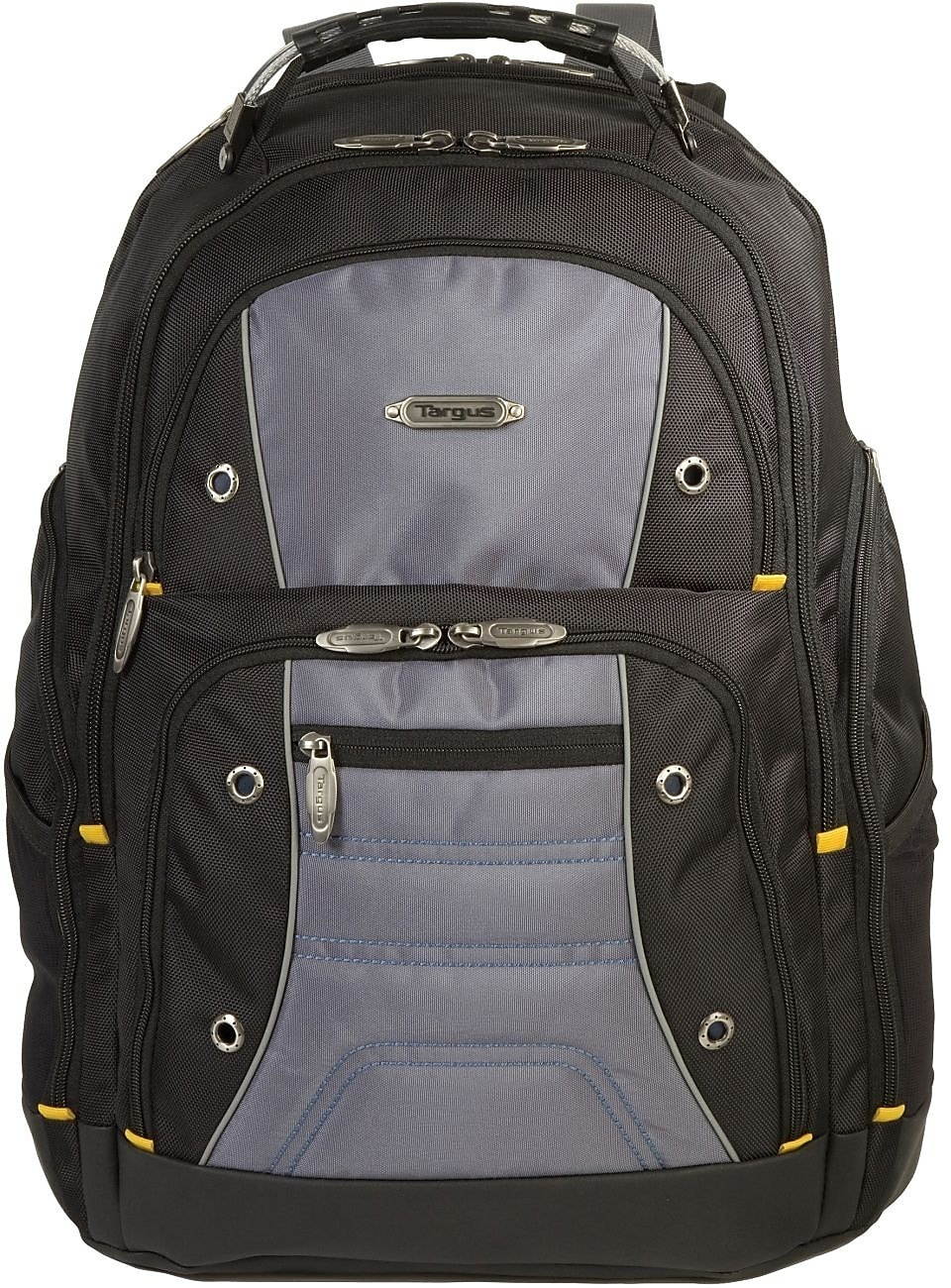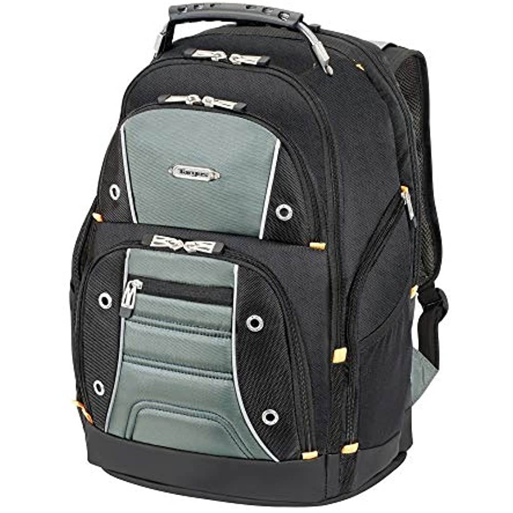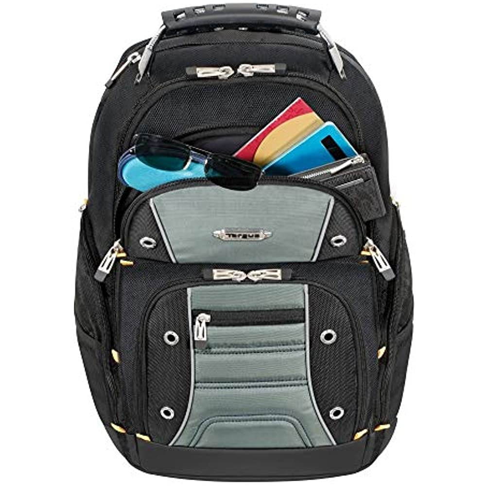 The Targus Drifter II Laptop Backpack is designed to fit laptops with up to 16” screens. This backpack features two large compartments for storage including a padded laptop compartment that keeps the device secure and separate from other items carried in the case. The extremely thick padding on the back panel includes a large hidden zippered compartment and is strategically placed to provide lumbar support for your back. The heavily padded shoulder straps provide comfort for travel and include an elastic loop specifically designed to hold sunglasses on the shoulder strap. The main front compartment includes pockets for business cards, a mesh accessory pocket and key clip. A convenient soft, lined pocket is scratch-resistant to store fragile accessories such as glasses, and more. To keep files in order, the interior divider provides a safe place to store documents. Focusing on durability, the Drifter backpack features a weather-resistant bottom, thick industrial zipper pulls and a sturdy molded plastic handle supported by metal grommets and cabling. The Drifter Backpack offers a rugged case full of storage options and protective compartments for important devices.