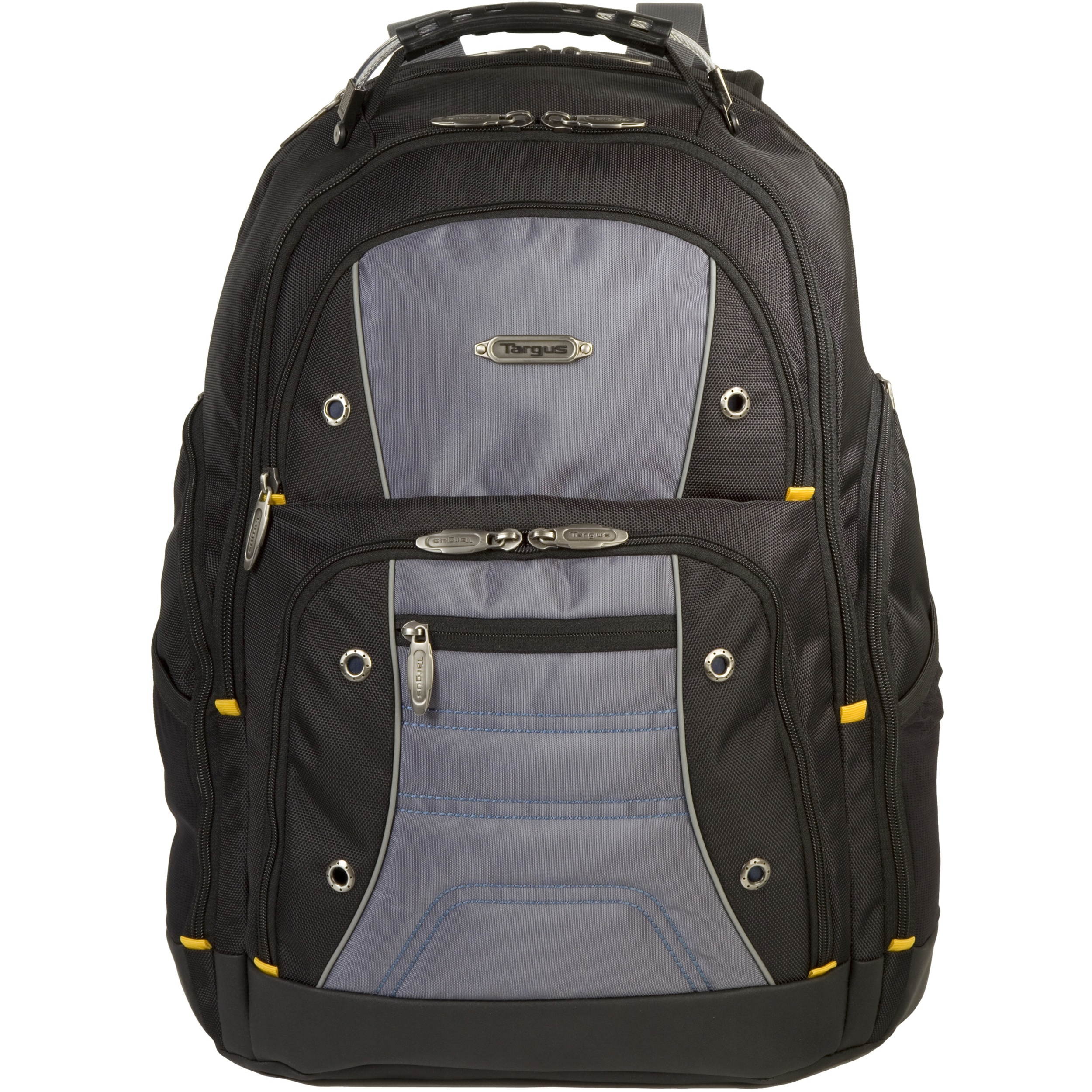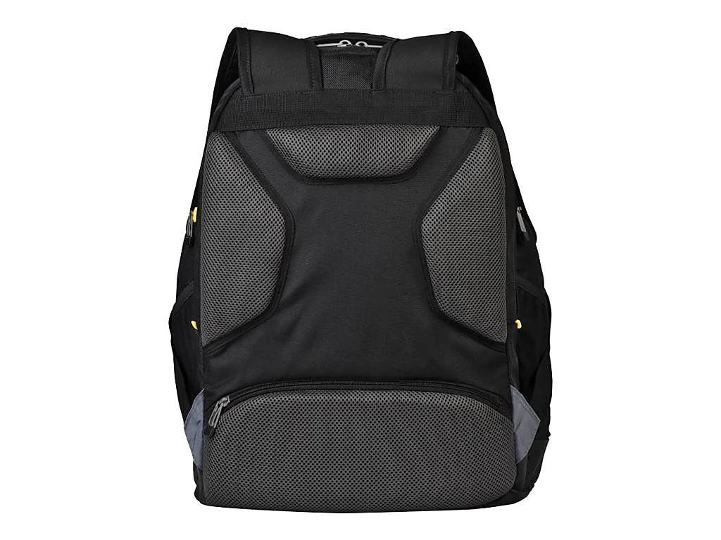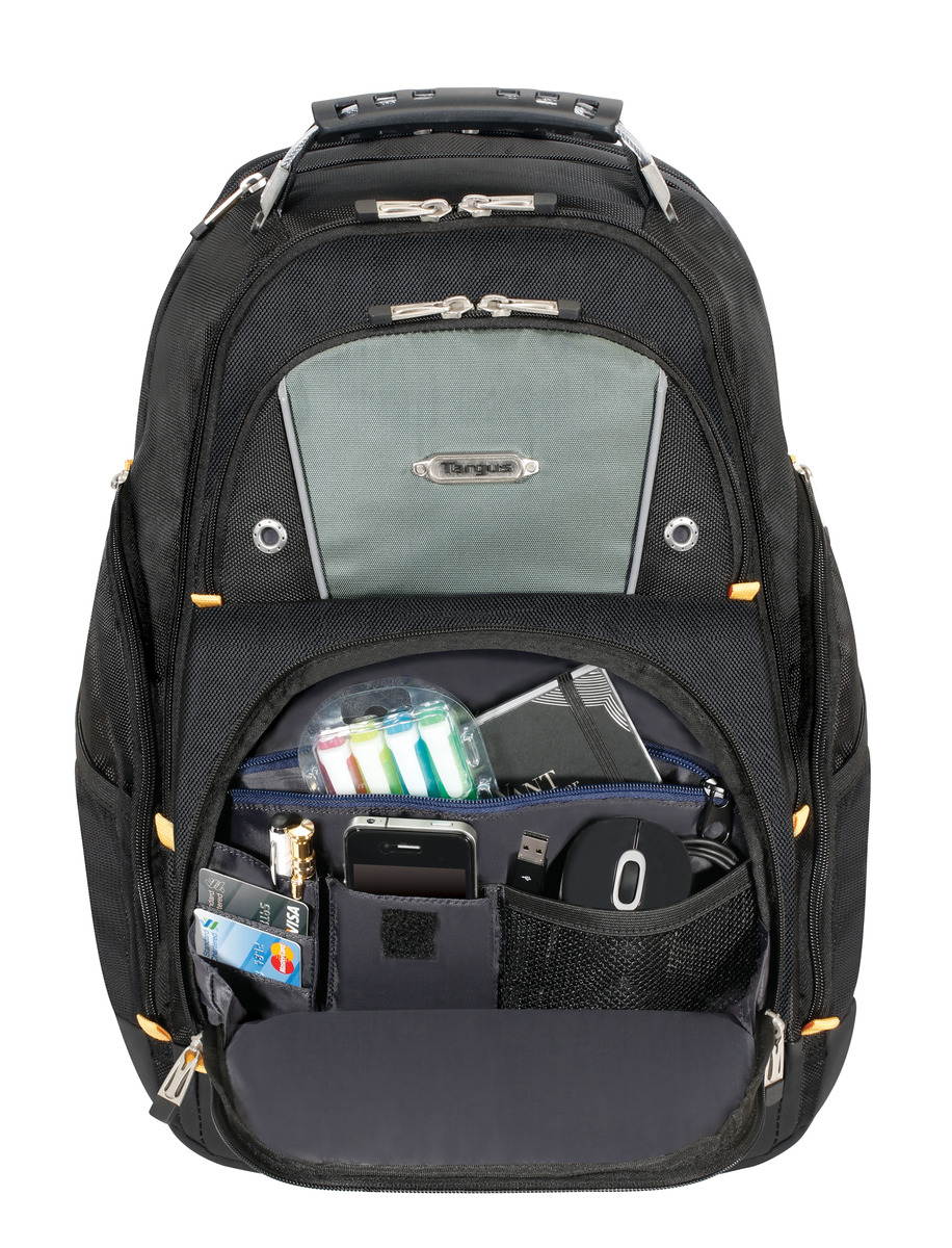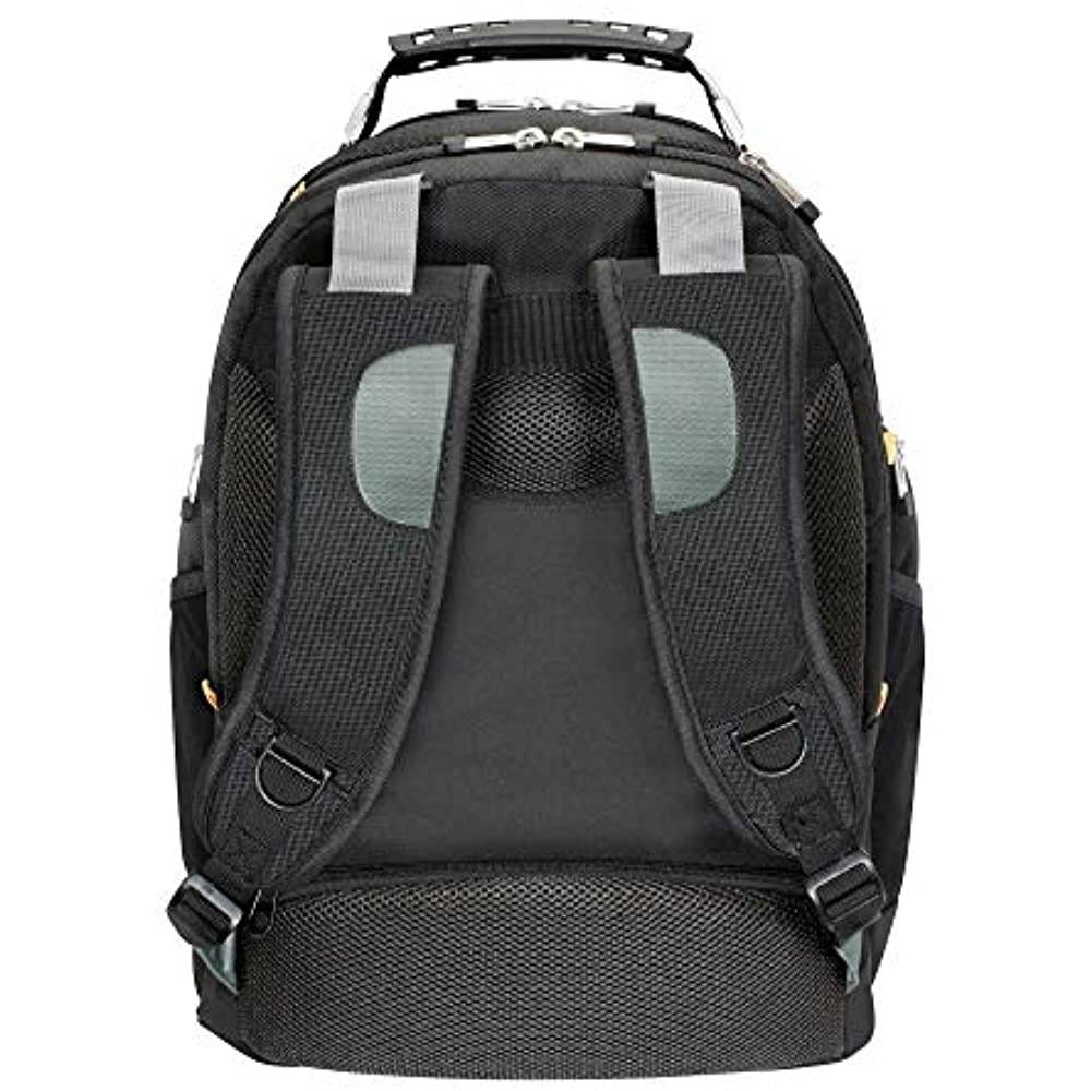 The Targus Drifter II Laptop Backpack is designed to fit laptops with up to 16” screens. This backpack features two large compartments for storage including a padded laptop compartment that keeps the device secure and separate from other items carried in the case. The extremely thick padding on the back panel includes a large hidden zippered compartment and is strategically placed to provide lumbar support for your back. The heavily padded shoulder straps provide comfort for travel and include an elastic loop specifically designed to hold sunglasses on the shoulder strap. The main front compartment includes pockets for business cards, a mesh accessory pocket and key clip. A convenient soft, lined pocket is scratch-resistant to store fragile accessories such as glasses, and more. To keep files in order, the interior divider provides a safe place to store documents. Focusing on durability, the Drifter backpack features a weather-resistant bottom, thick industrial zipper pulls and a sturdy molded plastic handle supported by metal grommets and cabling. The Drifter Backpack offers a rugged case full of storage options and protective compartments for important devices.
