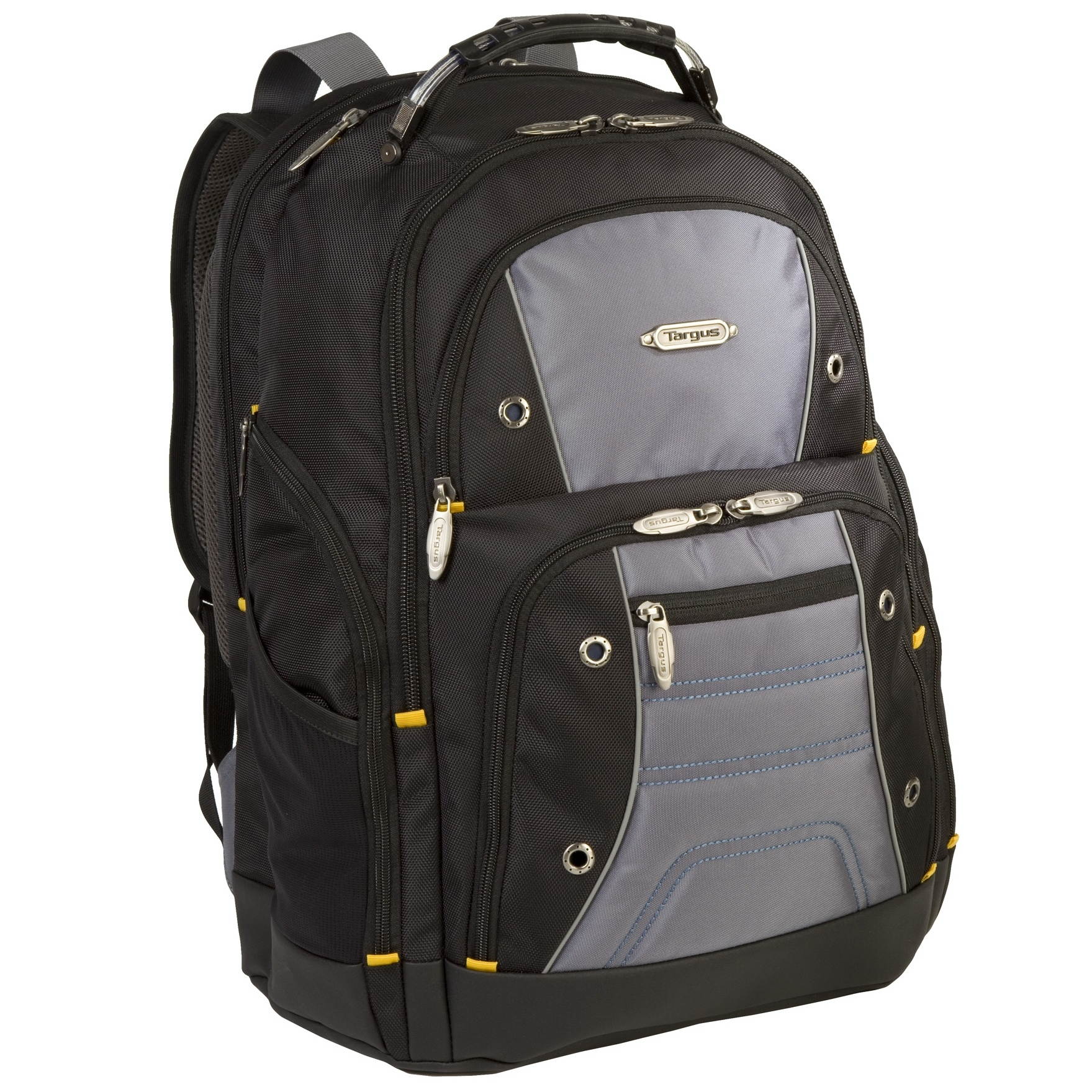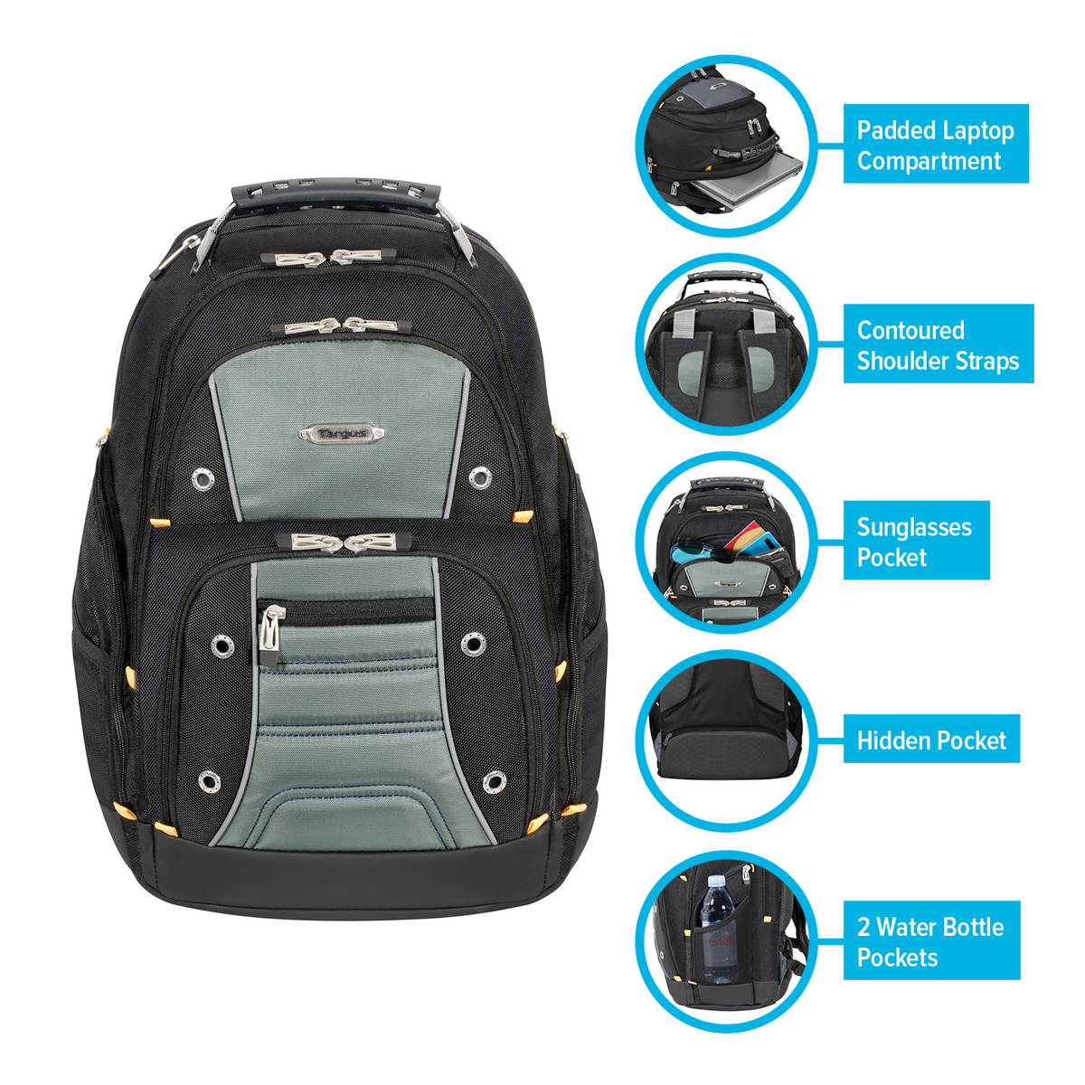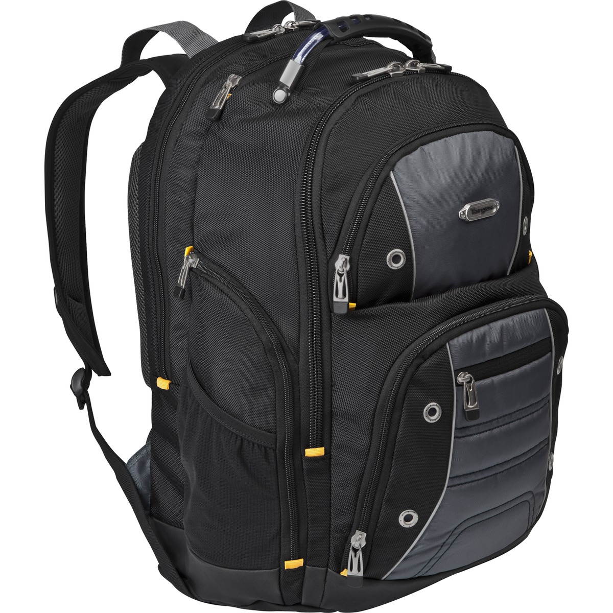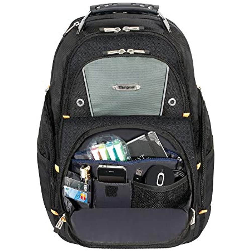 The Targus Drifter II Laptop Backpack is designed to fit laptops with up to 16” screens. This backpack features two large compartments for storage including a padded laptop compartment that keeps the device secure and separate from other items carried in the case. The extremely thick padding on the back panel includes a large hidden zippered compartment and is strategically placed to provide lumbar support for your back. The heavily padded shoulder straps provide comfort for travel and include an elastic loop specifically designed to hold sunglasses on the shoulder strap. The main front compartment includes pockets for business cards, a mesh accessory pocket and key clip. A convenient soft, lined pocket is scratch-resistant to store fragile accessories such as glasses, and more. To keep files in order, the interior divider provides a safe place to store documents. Focusing on durability, the Drifter backpack features a weather-resistant bottom, thick industrial zipper pulls and a sturdy molded plastic handle supported by metal grommets and cabling. The Drifter Backpack offers a rugged case full of storage options and protective compartments for important devices.