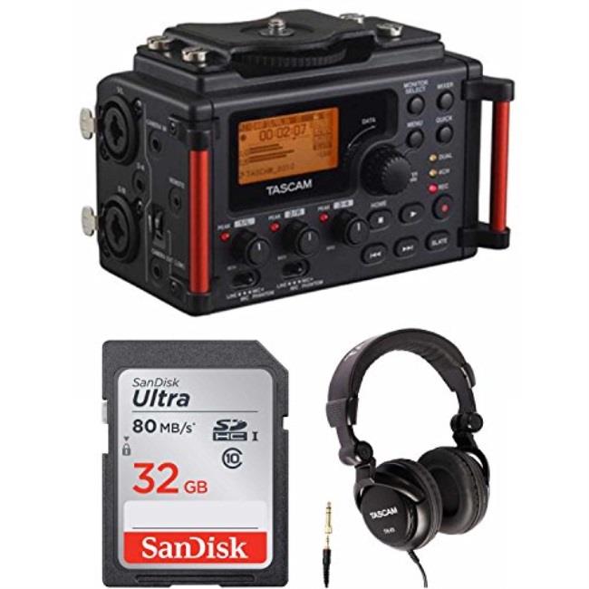 TASCAM's DR-60DmkII, an update of the award winning DR-60D, is the audio recording solution for on-set filmmakers and videographers. The streamlined design fits perfectly under a DSLR camera rig, without relying on bulky recorders or the limited audio quality of the camera's microphone in. The DR-60DmkII is the next generation of 4-track solid-state recording, based on TASCAM's decades of recording innovation. The upgraded HDDA microphone preamps provide up to 64dB of gain, capturing every nuance of a performance. Up to four channels at a time can be recorded to the internal SD Card, at up to 96kHz/24-bit WAV file resolution. Two of the mic inputs utilize locking XLR connectors with 48V phantom power, the other two use an 1/8" stereo connector for wireless and lavaliere microphones. Bundle Includes: TASCAM DR-60DmkII DSLR Audio Recorder 64GB SDHC Memory Card Tascam TH-02-B Multi-Use Studio Grade Headphones