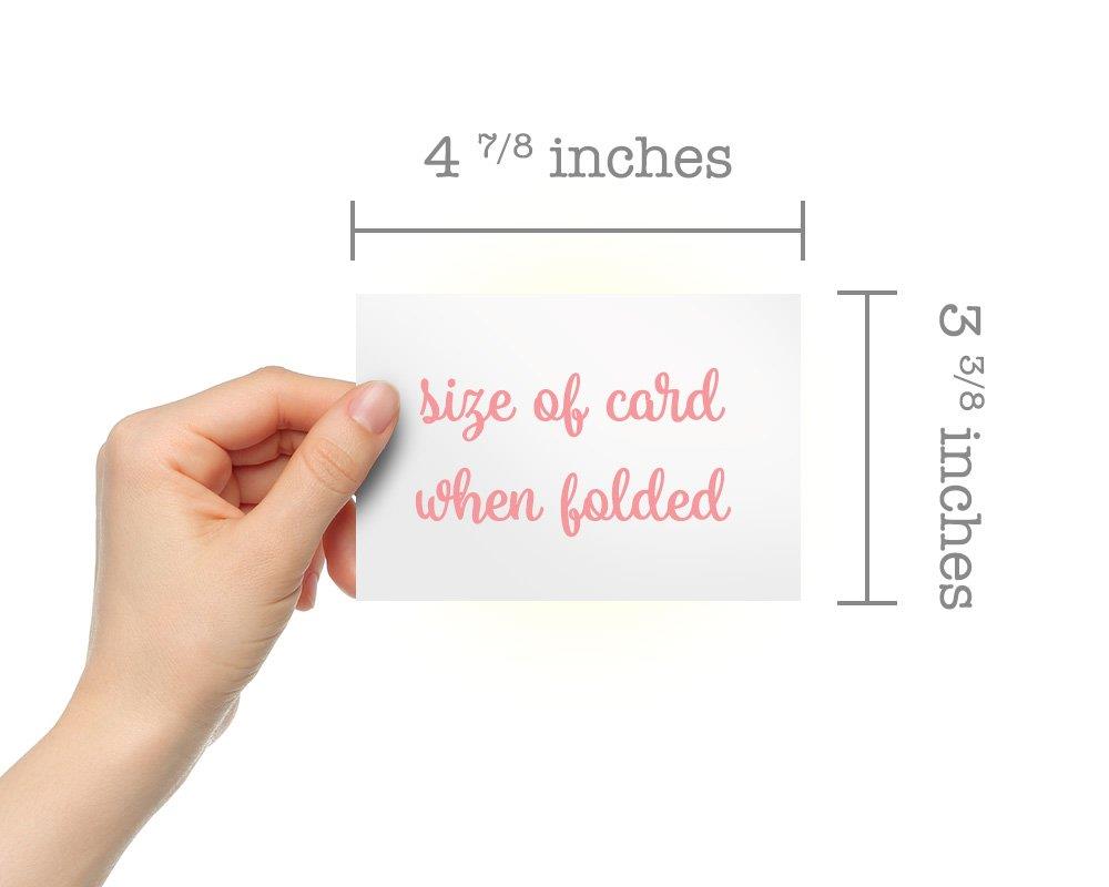 Each Teacher’s Desk Thank You Card measures 4.875" x 3.375" when folded and 4.875" x 6.75" when unfolded. Envelopes are the standard A1 size with a square flap and are made from 28lb bond linen paper. Gummed for sealing.