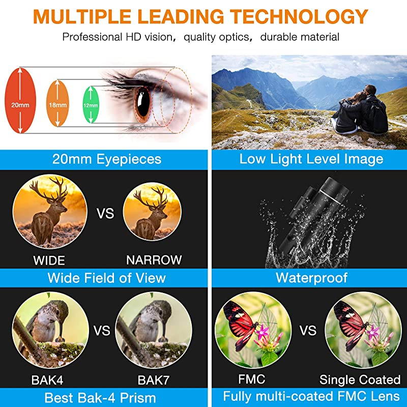***** Best Quality Guranteed. *****12 ZOOM FOR HIGH-RESOLUTION MATCH WATCHING - HD telescope equipped with BAK-4 prism and fully multi-coated lens, provides clear and bright images, when you watch Baseball/Rugby/Soccer/Basketball/Tennis, and other matches, you will never be distressed by long-distance, get in touch with your favorite athletes and catch each wonderful moment. *****SINGLE HAND FOCUS CONVENIENT VIEWING - Ergonomic design of telescope helps you focus quickly and accurately within one hand. The easy to use BAK4 could track the athletes in a timely manner and can be easily adjusted with your forefinger.