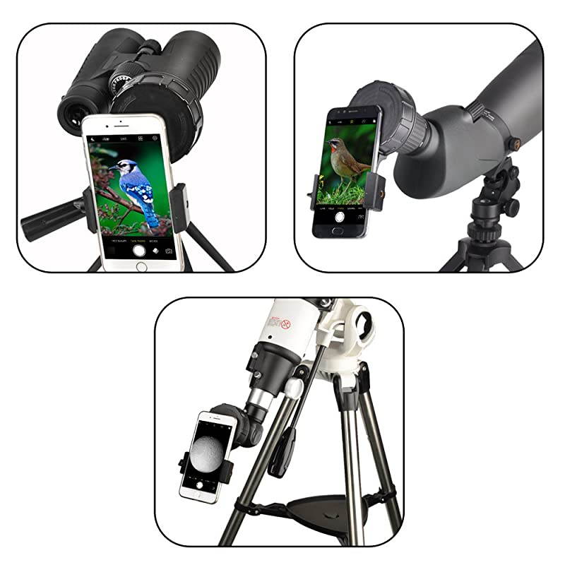 Universal Telescope Phone Adapter Quick Aligned Cell Phone Digiscoping Adaptor Mount (Big Type) Here is the best smartphone adapter for your Spotting Scope, Binoculars, Monocular and most optical device. Just connect optical devices with our smartphone adapter. Easy and interesting.
