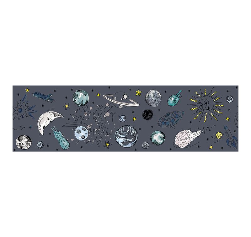 Tempaper Kids Borders + Stripes Galaxy Out Of This World Slate design in a charcoal gray color way is a self-adhesive individual border or stripe sold in a roll of 6" wide by 15'. Imaginations run wild with this hand-drawn watercolor space design. Shooting stars, space rockets and an expressive moon makes this playful design a favorite. Galaxy repeat is 20.5 inches. This border can be stacked to create a thicker stripe or evenly spaced to create a customized look. Design tip: When stacking borders, slightly shift the stripe left or right to avoid repetition of elements in same position on each row. Product works best when applied to surfaces that have been painted with a satin or semi-gloss finish. Applications on flat paints and textured surfaces are not recommended. One roll will cover approximately 7.5 sq. ft. Made in the U.S.A.About the Tempaper Kids Collection: Easily change the look of a child's bedroom, play space or bathroom with our peel and stick borders and stripes. This collection brings a new dimension of color and interest to kids' rooms and is a convenient, dynamic alternative to painting, hanging decals or wallpapering an entire room. Tempaper Kids is FDA Approved, FDA 21 CFR and Certified Child Toy Safety. Tempaper is a lead-free, phthalate-free, and VOC-free product. The adhesive and inks that we use are water-based, environmentally safe and friendly.