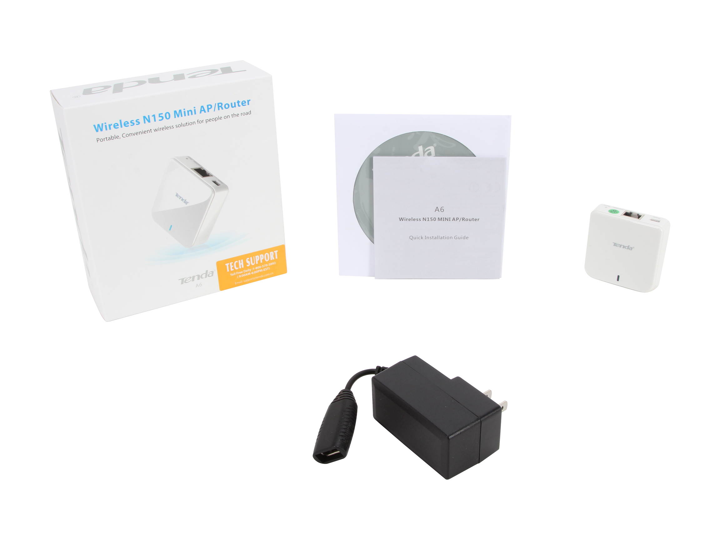 | Package Contents | A6 150Mbps Wireless Mini AP/Router; Quick Install Guide; Resource CD |