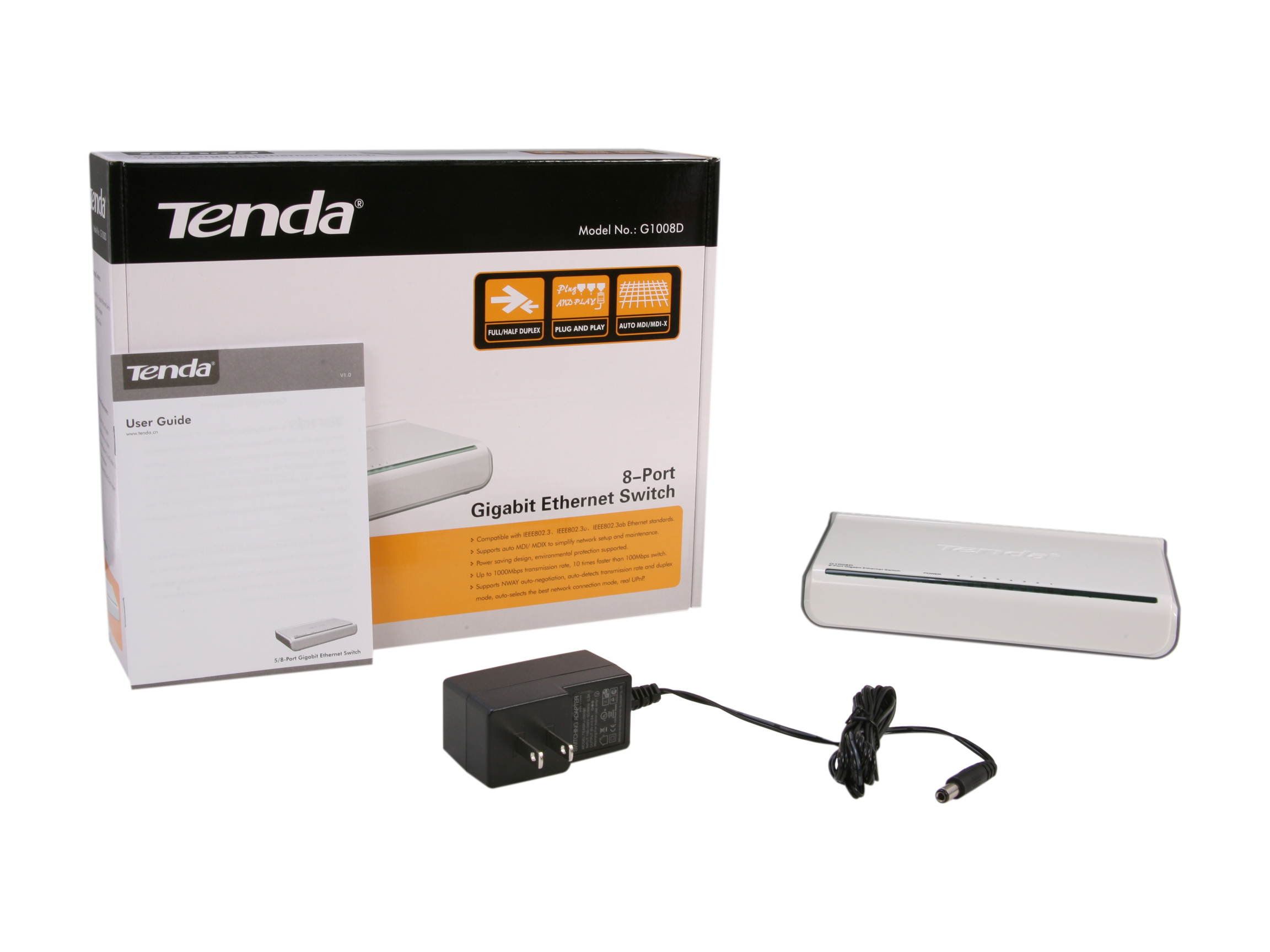| Package Contents | G1008D 8-Port Gigabit Ethernet Switch One Power Adapter One User Guide |