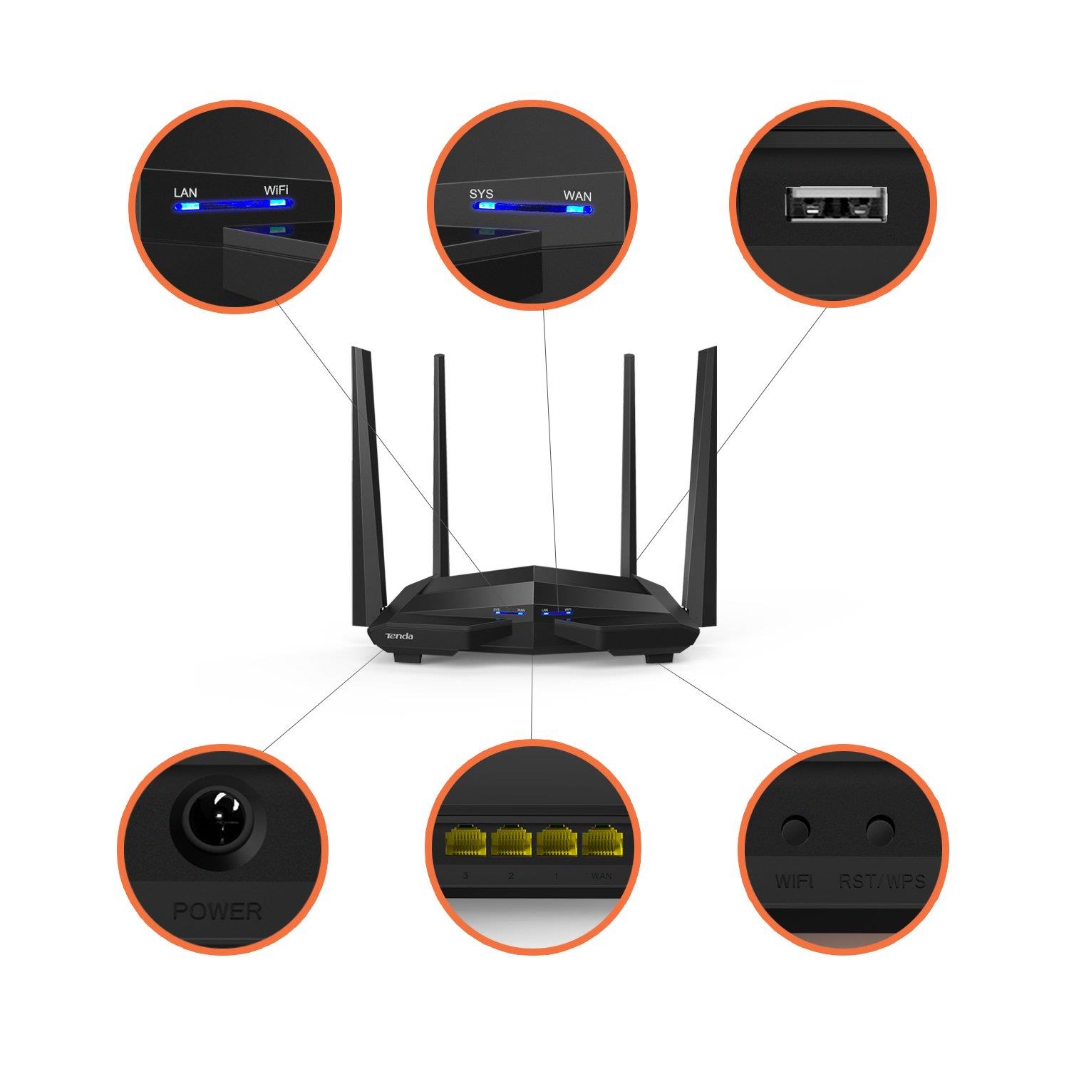 Tube and Netflix. With MU-MIMO technology, Beamforming technology, built-in high powered amplifiers and external antennas, AC10U bring longoperating range to fulfill greater home coverage and you will never worry about that you have too many devices to connect. Gigabit Ethernet ports give you the fastest, most reliable internet performance. Addtionally, Tenda WiFi app and its USB port provide the smartest way to manage your network local and remotely share fun with your family. Selling Points AC1200 Mbps Wireless Dual-Band Wireless MU-MIMO 4 Omni-directional Antennas 3 Gigabit LAN &...