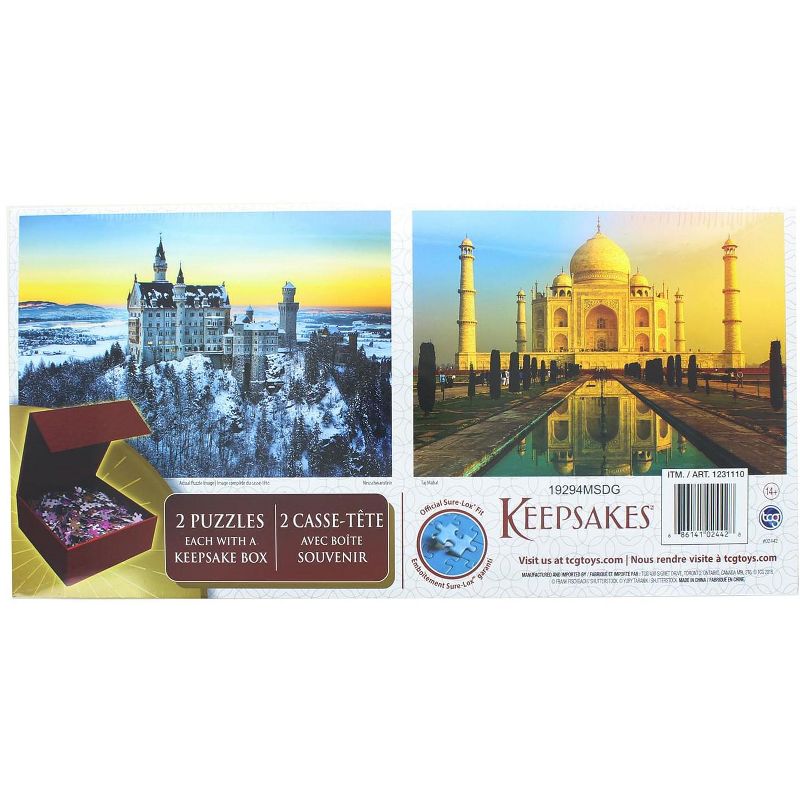 • 2 FOR 1: Includes two (2) 1000-piece jigsaw puzzles, one featuring Neuschwanstein Castle and the other the Taj Mahal. Each puzzle measures 27 x 19 inches when completed.