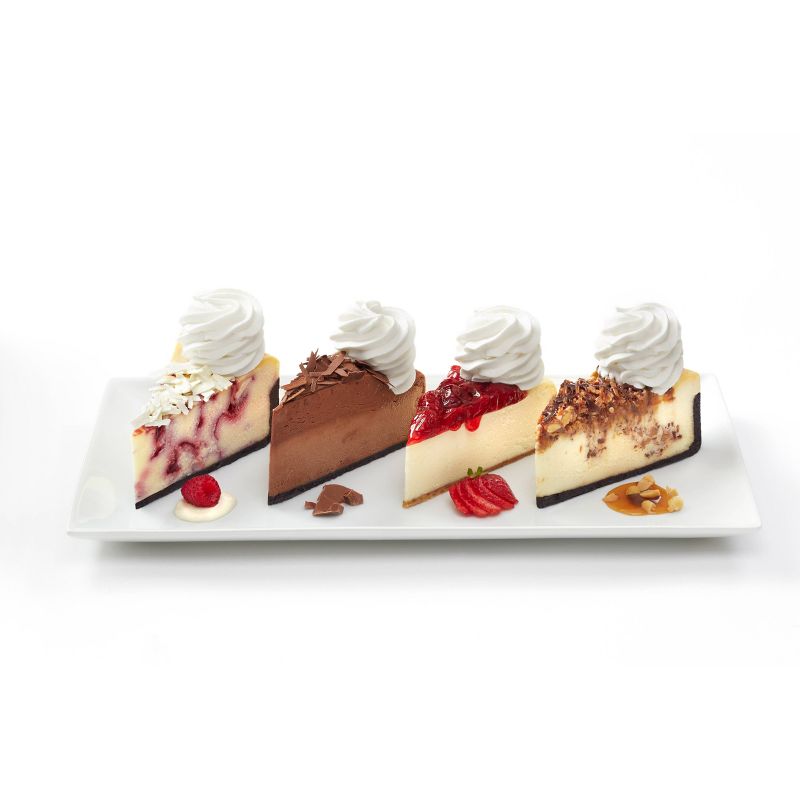 The Cheesecake Factory® Grand Cheesecake Selection is a combination of the very best flavors from The Cheesecake Factory® restaurant. The flavors included are Strawberry Topped Original Cheesecake, White Chocolate Raspberry Truffle Cheesecake, Chocolate Mousse Cheesecake and Snickers Bar Chunks Cheesecake. There are 2 slices of each of these delicious flavors, perfect for sharing with family and friends.