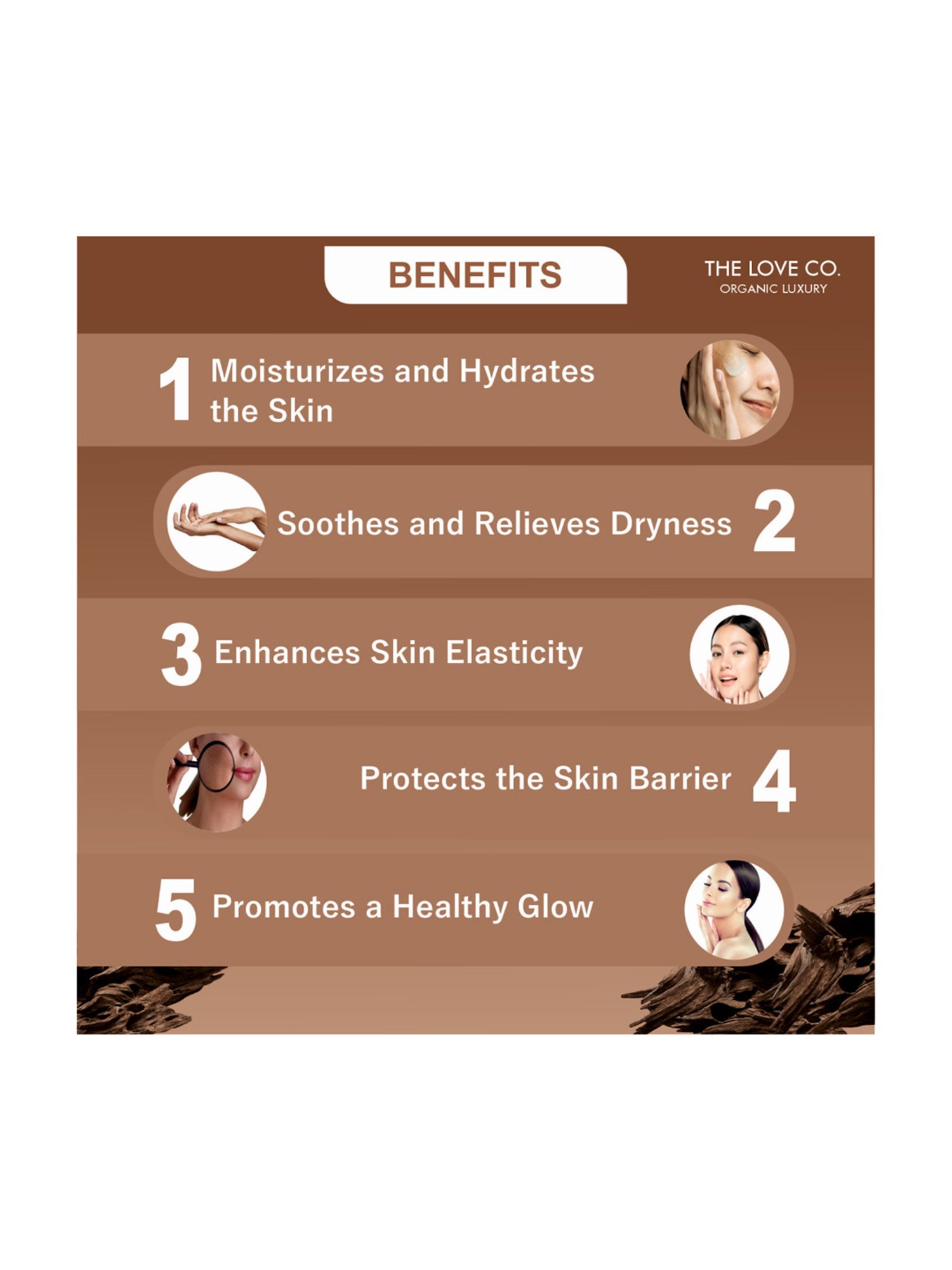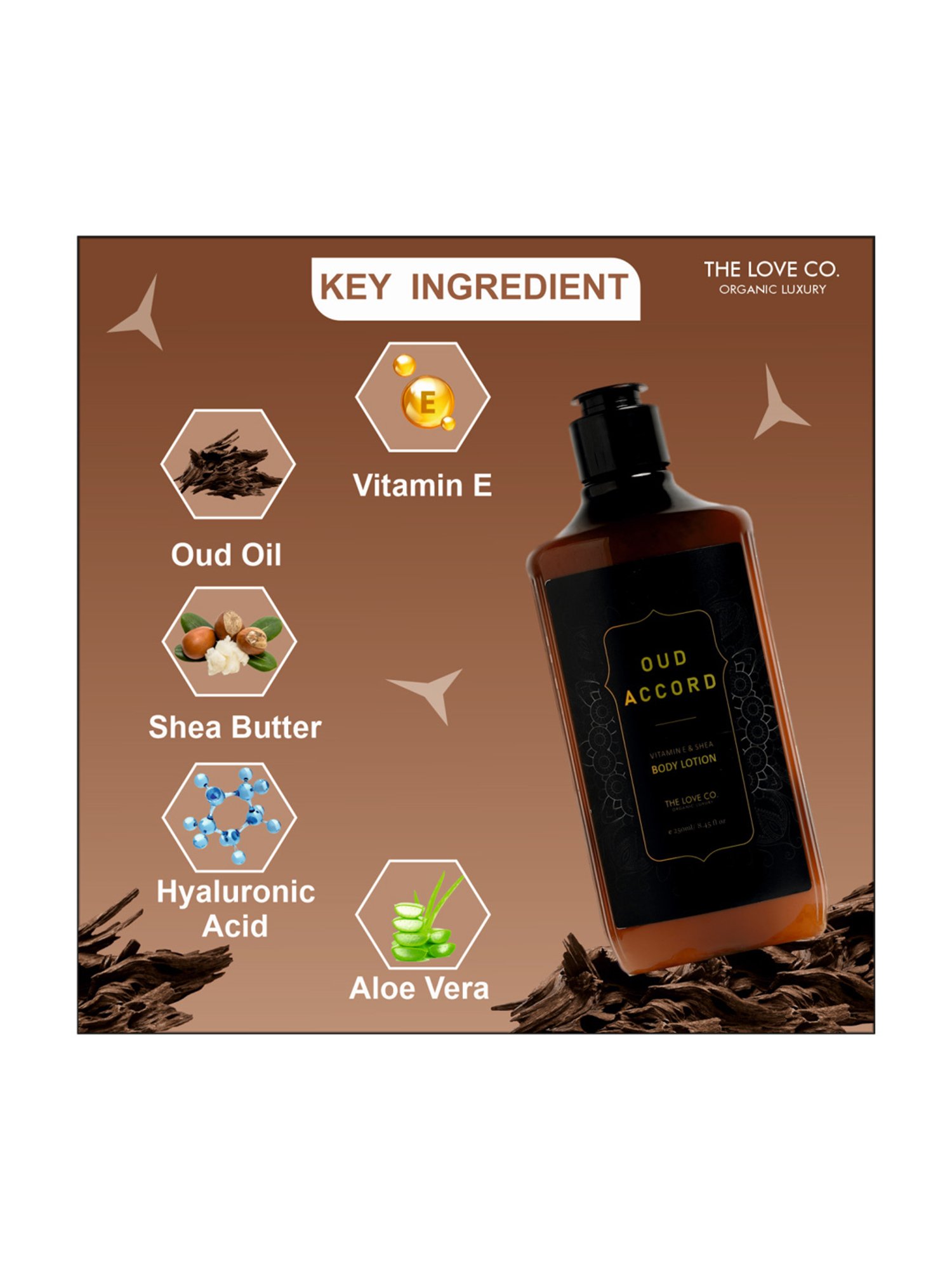 The Love Co. oud accord body lotion is a powerful, non greesy, non sticky, moisturizer which goes even with the driest skin, it absorbs quickly into the skin leaving it softer and smoother like never before. Being infused with the power of 15 natural butters it gives intense hydration which lasts upto 48 hours. Added vitamin E, B5 makes it a perfect body lotion for your daily skincare regime which nourishes deeply and make your skin youthful, glowy and radiant. Our body lotion is made with love without any harmful chemicals such as parabens, sulfates and ofcourse is cruelty-free.