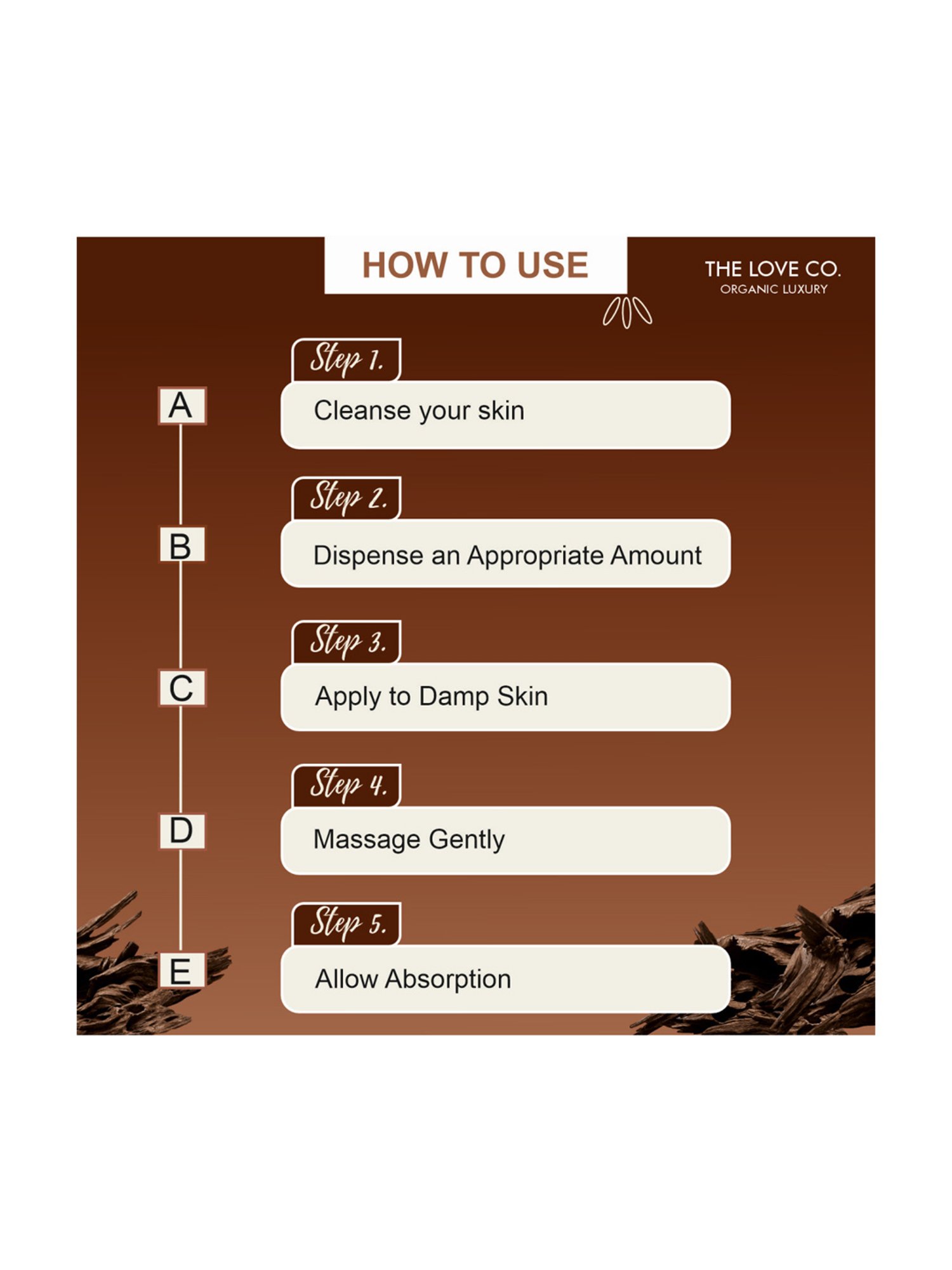 Step 1 - Scoop out about a quarter-sized amount of lotion and warm it up between your hands. Step 2 - Gently massage lotion all over your body with two hands in circular motions. Step 3 - Apply to arms,chest and down your legs to your feet. Step 4 - Take extra care to apply the body lotion to areas prone to dryness like elbows,hands and heels. |