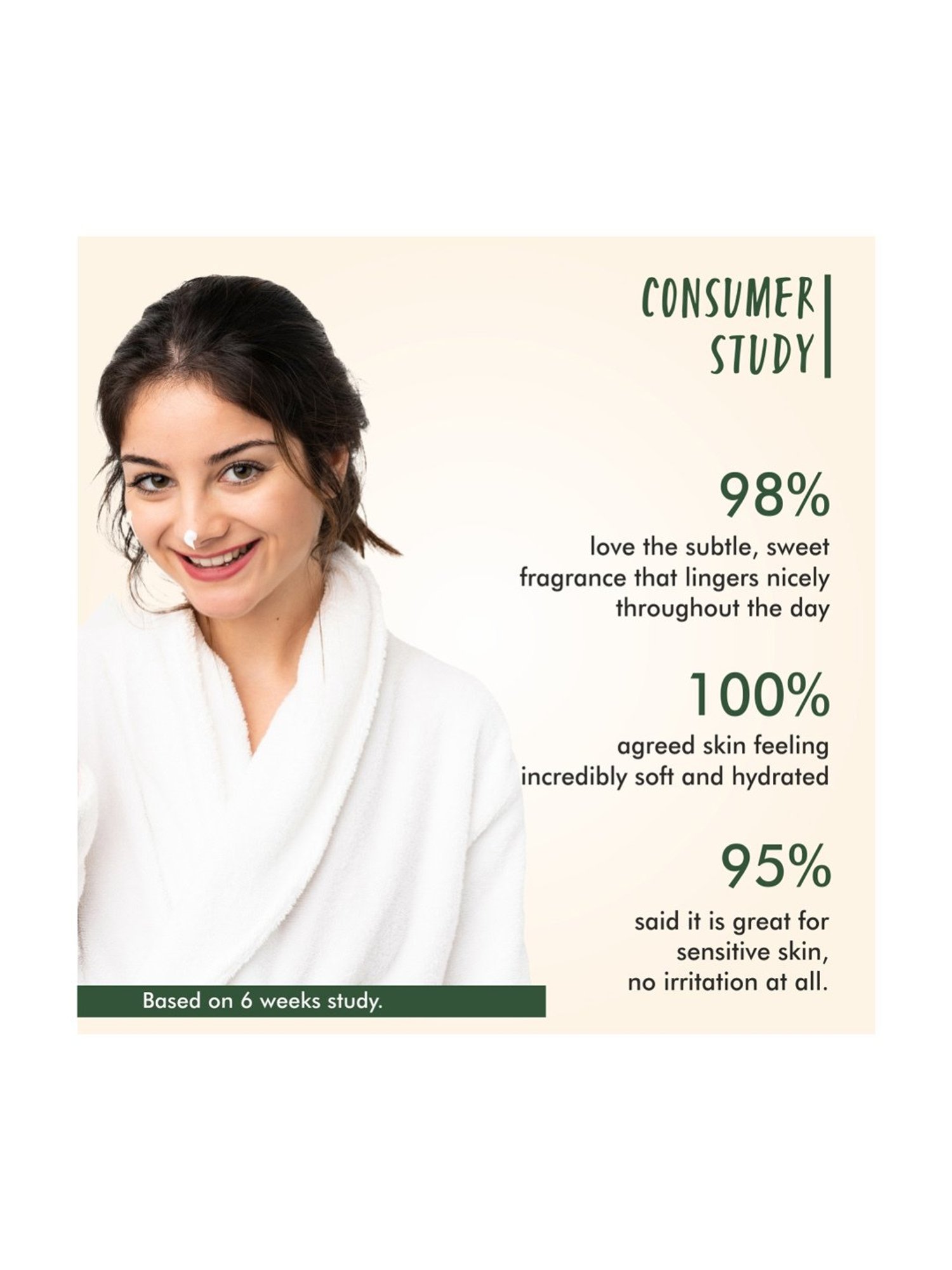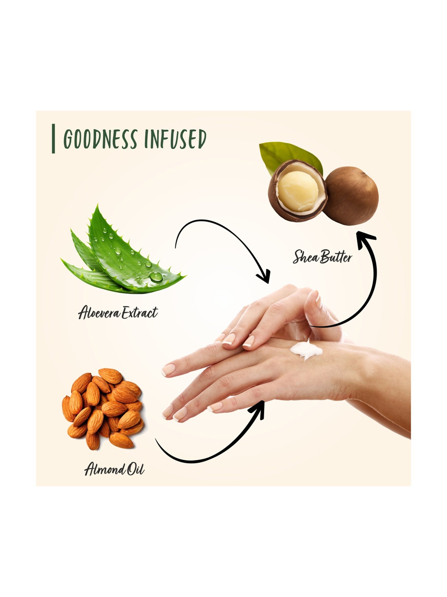 Composition: Aloe Bardbadensis Leaf - Aloe Vera Extract, Sweet Almond Kernel Oil - Prunus Amygdalus Dulcis, Helianthus Annuus - Sunflower Seed Oil, Cucumis Sativus - Cucumber Fruit Extract, Argania Spinosa Kernel - Argan Oil, Calendula Officinalis Flower Extract, Camellia Sinensis Seed Extract, Kukum Seed Butter - Garcinia Indica, Madecassoside, Sodium Hyaluronate, Cetearyl Olivate and Sorbitan Olivate - Oilive Oil Derivatives, Copernicia Cerifera - Carnauba Wax, Simmondsia Chinensis - Jojoba Seed Oil, Glycerin, Butyrospermum Parkii - Shea Butter, Tocopheryl Acetate - Vitamin E, Base Q.S., Ifra Certified Fragrance Q.S.