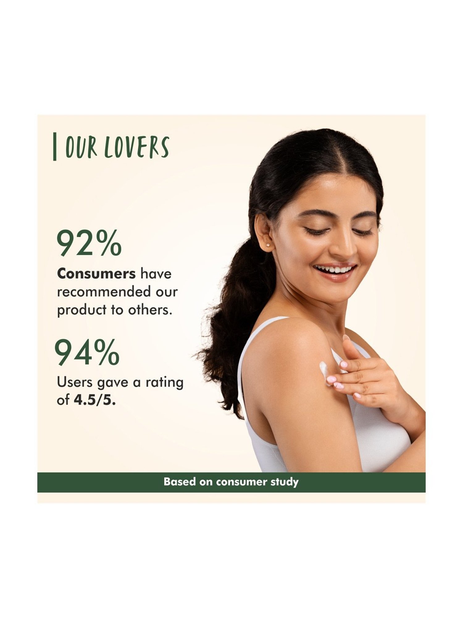 Step 1 - Scoop out about a quarter-sized amount of lotion and warm it up between your hands. Step 2 - Gently massage lotion all over your body with two hands in circular motions. Step 3 - Apply to arms,chest and down your legs to your feet. Step 4 - Take extra care to apply the body lotion to areas prone to dryness like elbows,hands and heels. |