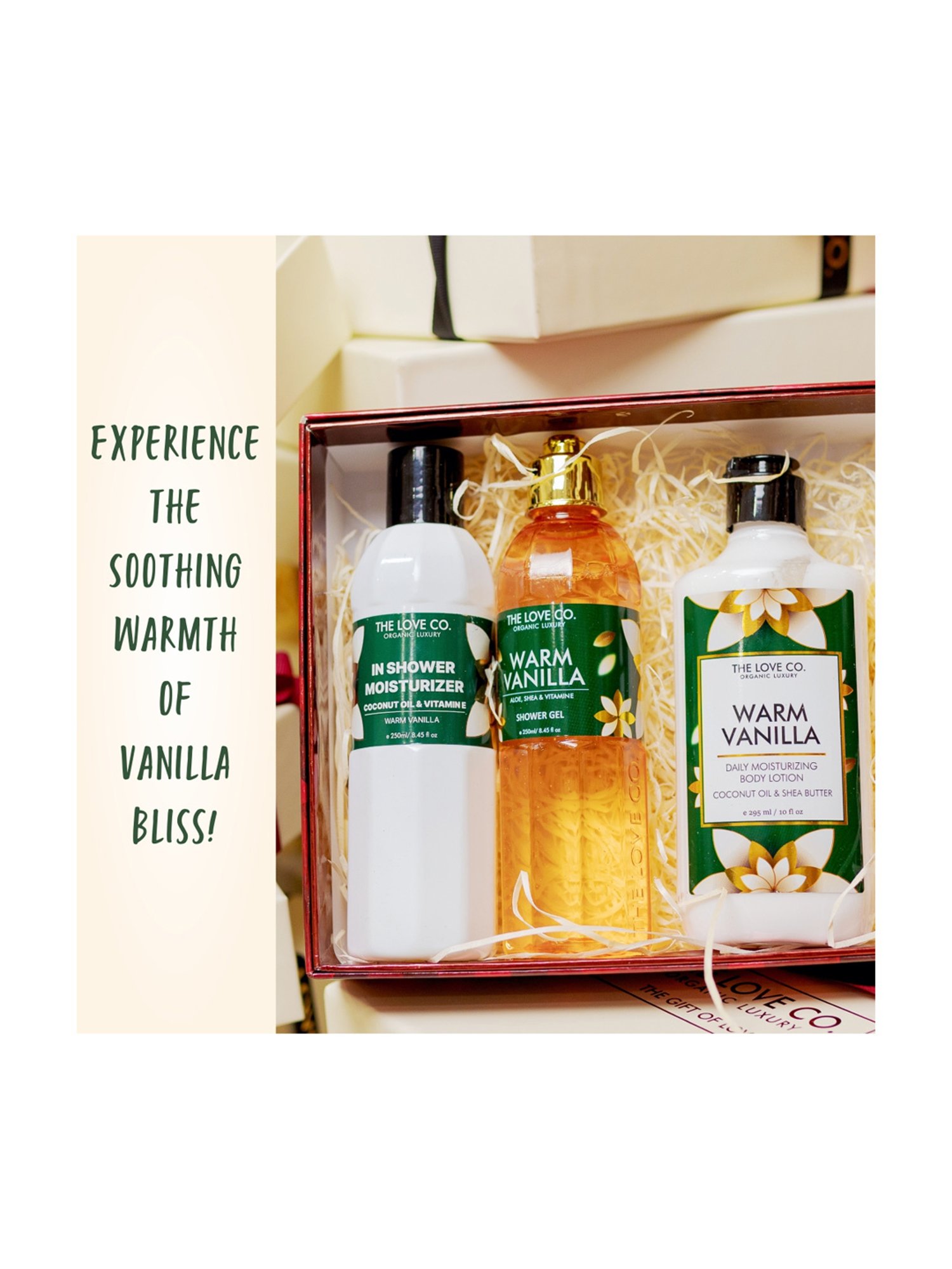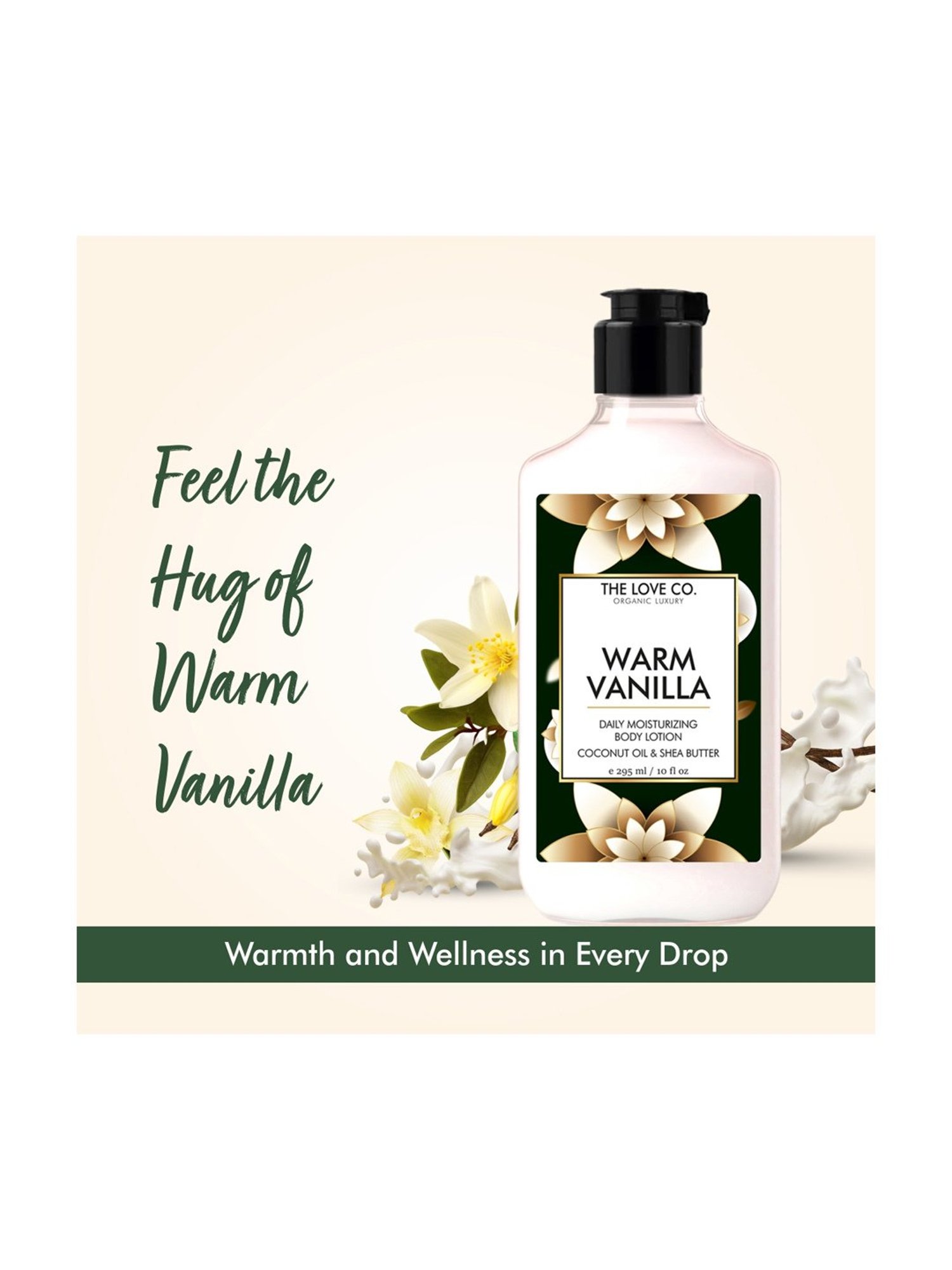 The Love Co. warm vanilla body lotion is a powerful, non greesy, non sticky, moisturizer which goes even with the driest skin, it absorbs quickly into the skin leaving it softer and smoother like never before. Being infused with the power of 15 natural butters it gives intense hydration which lasts upto 48 hours. Added vitamin E, B5 makes it a perfect body lotion for your daily skincare regime which nourishes deeply and make your skin youthful, glowy and radiant. Our body lotion is made with love without any harmful chemicals such as parabens, sulfates and ofcourse is cruelty-free.