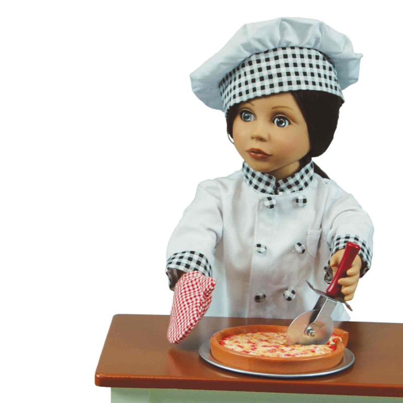 The Queen's Treasures 18 Inch Doll Kitchen Food Accessory Set, Pizza Pan, Pizza Cutter & Oven Mitt. Everything 18" dolls need to bake, slice and serve everyone's favorite -- pizza at home or in their own Shoppe. Collection includes an oven mitt, pizza cutter and real metal pizza pan. Pan fits both Cheese and Pepperoni Pizza. Pizza Pan measures 4 3/4" in diameter. Pizza cutter is 3 3/4"L. Sized perfectly for 18" doll play.