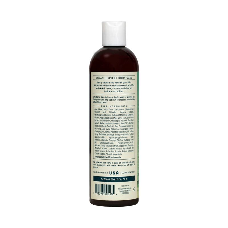 Cleanse and nourish with a moisturizing lather that leaves skin feeling hydrated, refreshed and renewed. The Seaweed Bath Co. Hydrating Soothing Body Wash helps to restore and soften skin with a unique formula of nutrient-rich bladderwrack seaweed extract with antioxidant-rich spirulina (blue green algae) and ultra-hydrating coconut, neem, kukui and olive oils. Best for those who want a deeply moisturizing body wash to calm, cleanse and nourish skin. Sustainably-harvested bladderwrack seaweed detoxifies, hydrates and replenishes skin while antioxidant-rich spirulina (blue green algae) cleanses and purifies skin. Hawaiian kukui oil, coconut oil and aloe vera nourish, hydrate and soften skin. This versatile daily body wash also can be used as a shaving gel or bubble bath.
