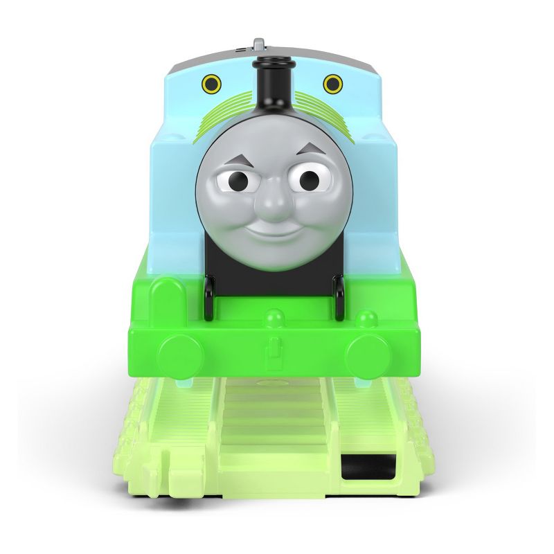 • Fisher-Price Thomas & Friends Hyper Glow Thomas motorized toy train features lights that leave a glowing trail on glow-in-the-dark TrackMaster track