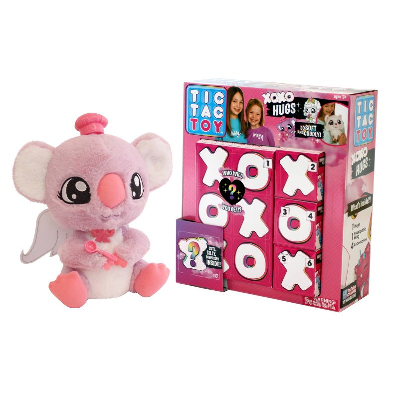 Tic Tac Toy's XOXO Hugs are packed with surprises! Follow the numbers marked on the boxes to unbox 6 different surprises hidden inside, including a soft and cuddly XOXO Hugs plush! Each XOXO Hugs comes with colorful wings and silly accessories that are swappable with all of the other XOXO Hugs! Mix and match the wings and surprise accessories to create your favorite flying combinations! There's 6 unique XOXO Hugs and accessory sets to collect.