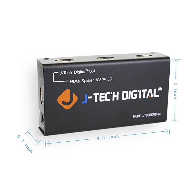 Features: - One HDMI signal in and four HDMI signals out. This is true HDMI 1.3 Certified HDMI Splitter; V 1.3 signal in, V 1.3 signal out. This is not a splitter that is "support/compatible/compliant" to HDMI 1.3. - This is the best HDMI 1x4 on the market offered at this incredible price from based on the specifications and the only HDMI 1x4 Splitter with headroom up to 10.2G bps. - The two outputs are independent; it works even when only one display is working. - Support 3D video (To get 3D, all units connected to the splitter outputs must support 3D) -